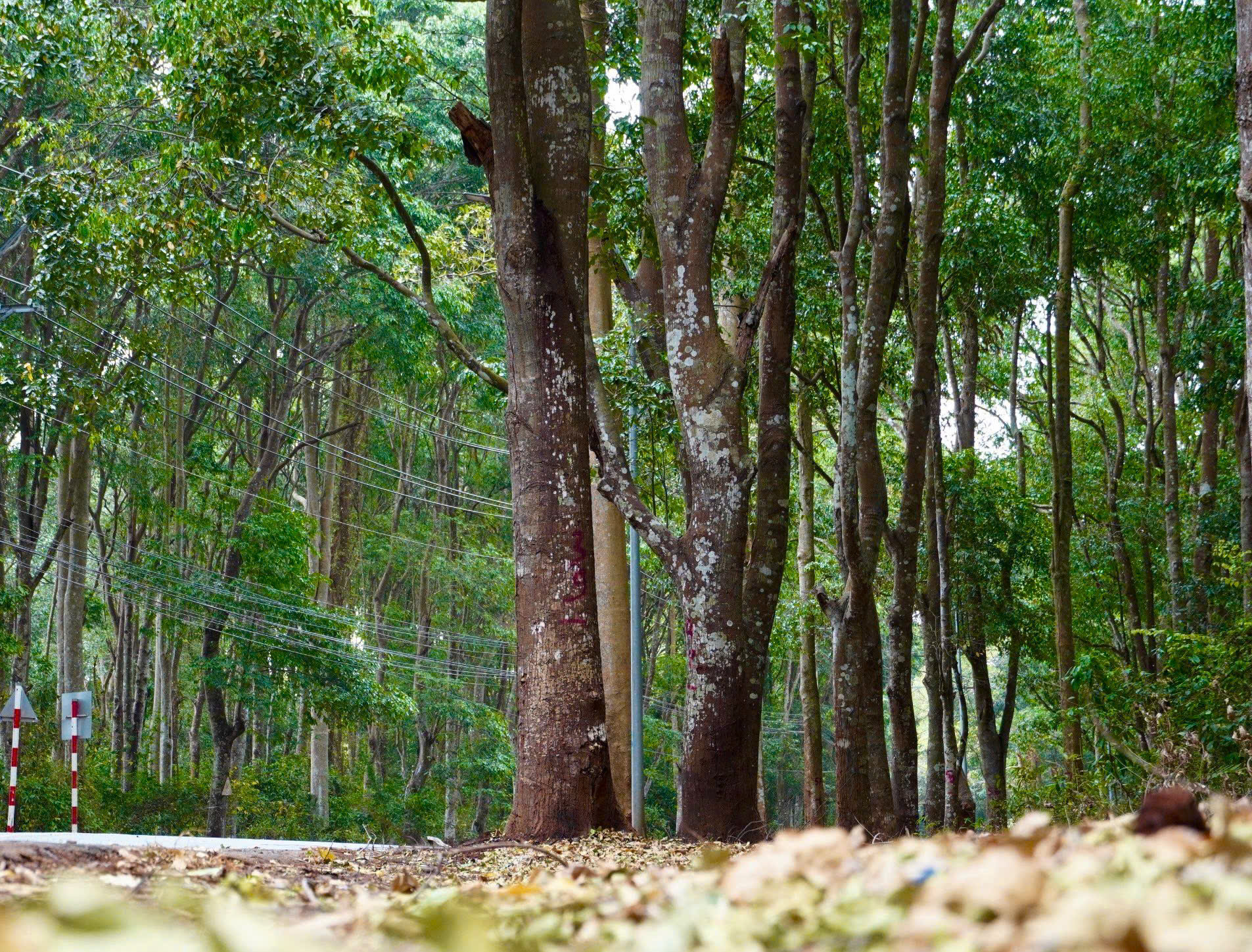 Những cây dầu thẳng tắp, cao vút rất dễ bắt gặp trong rừng phòng hộ Xuân Sơn. Ảnh: QUANG VŨ