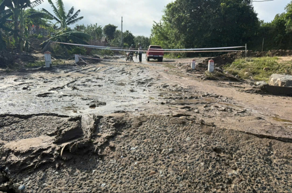 Chính quyền địa phương đổ đá, khắc phục lối đi tạm cho người dân.