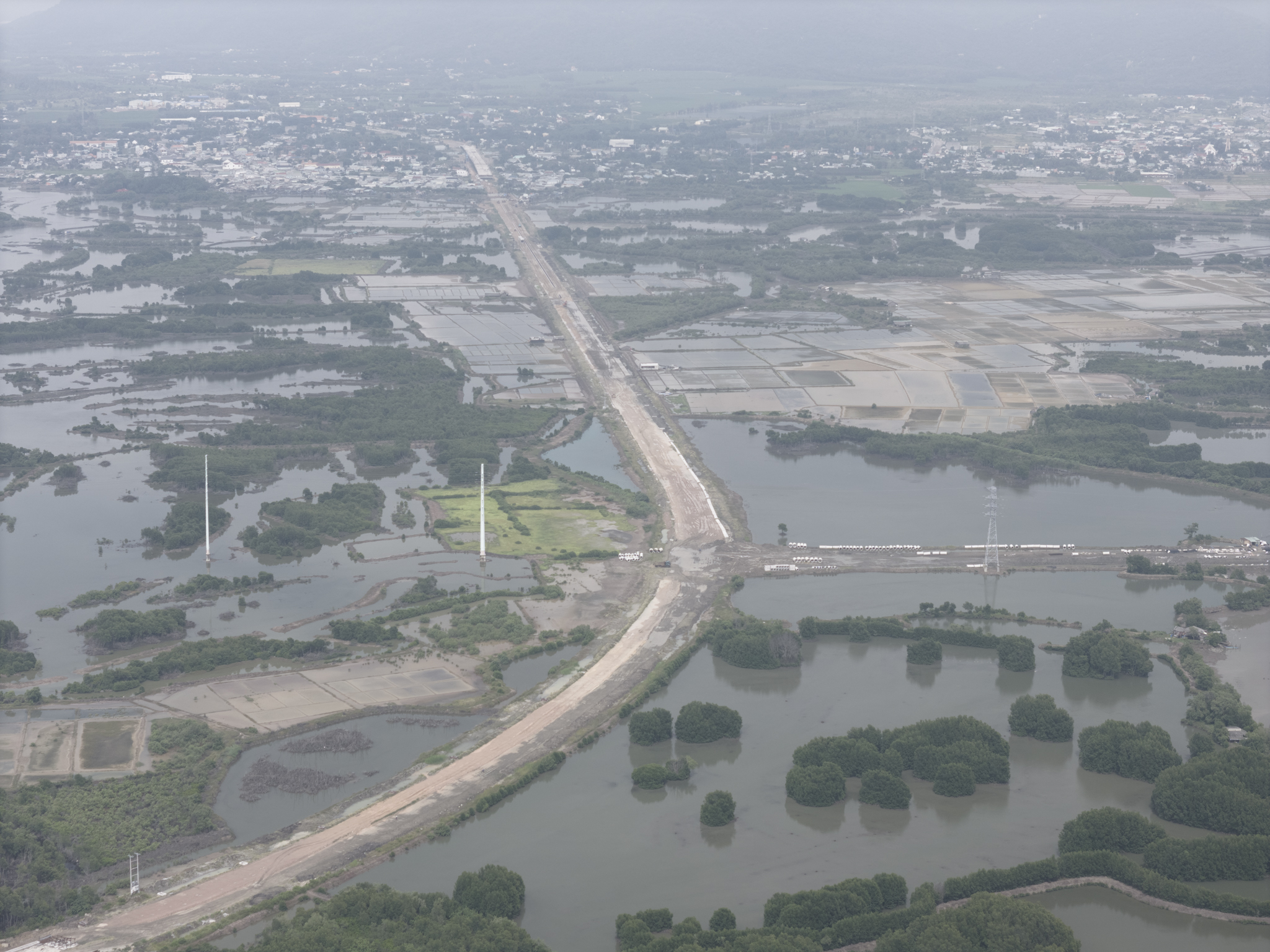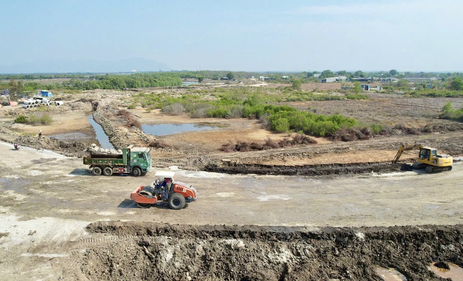 Trên công trường, đường qua TP.HCM đã cơ bản hoàn thiện, rõ hình hài con đường thẳng tắp nối về phía biển. Cùng với đó, hàng trăm kỹ sư, công nhân điều khiển máy móc thiết bị tranh thủ thi công xuyên ca để hoàn thành nút giao và một số hạng mục còn lại.