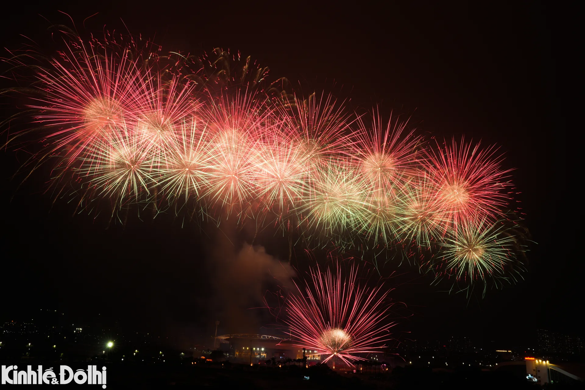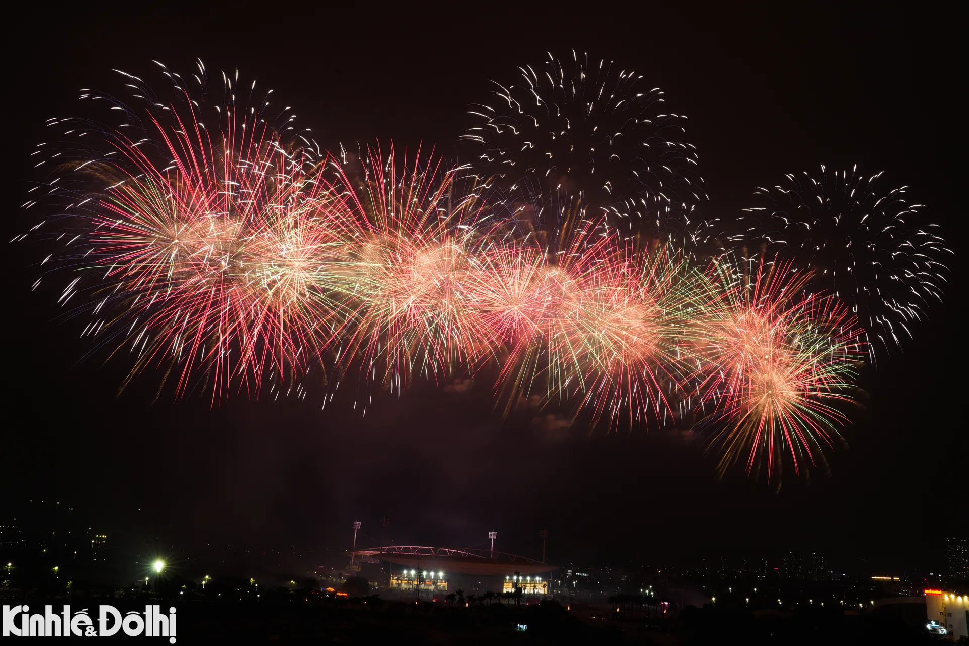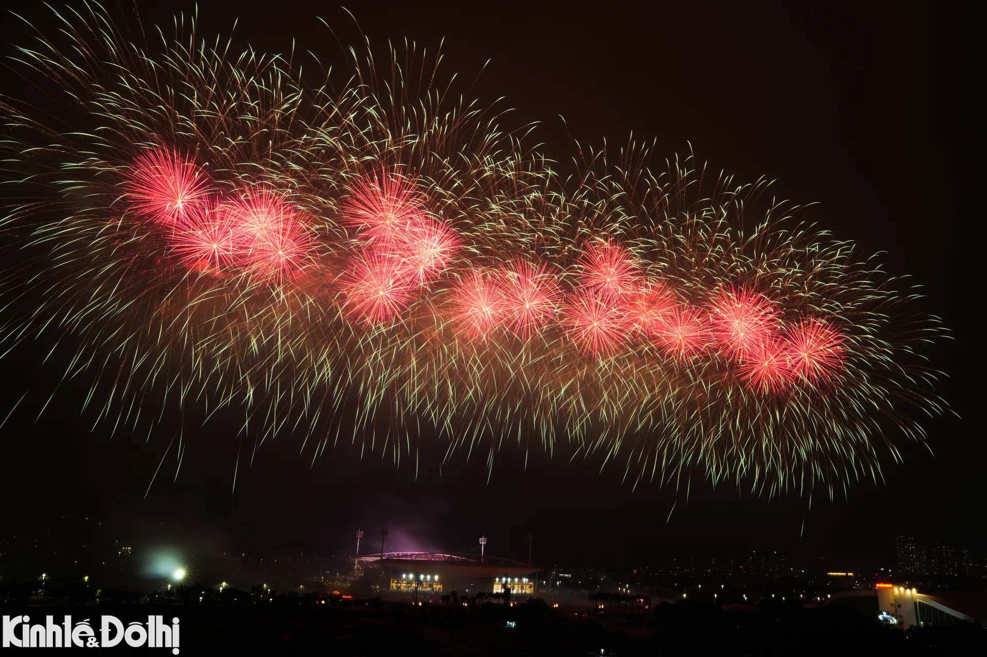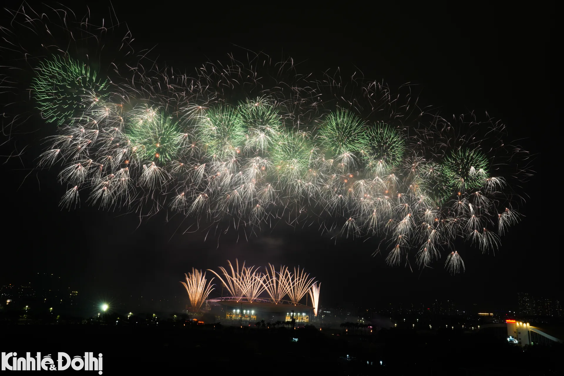 Màn bắn pháo hoa tầm cao kết hợp hỏa thuật tại sân vận động Mỹ Đình được xem là sự kiện trình diễn pháo hoa quy mô lớn nhất từ trước đến nay ở Hà Nội.