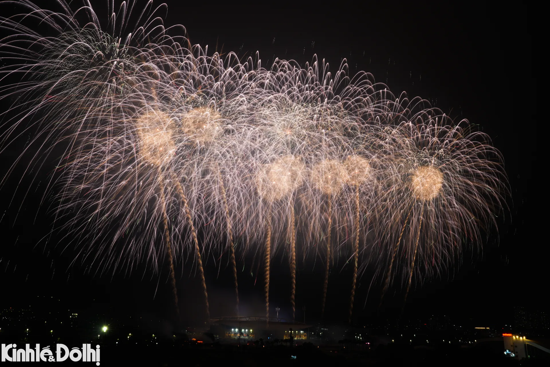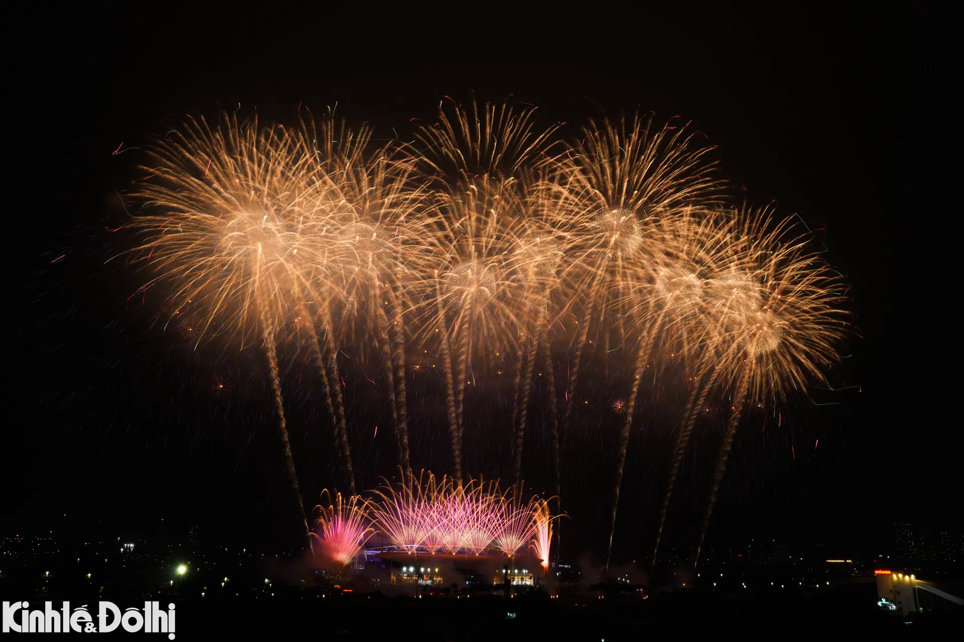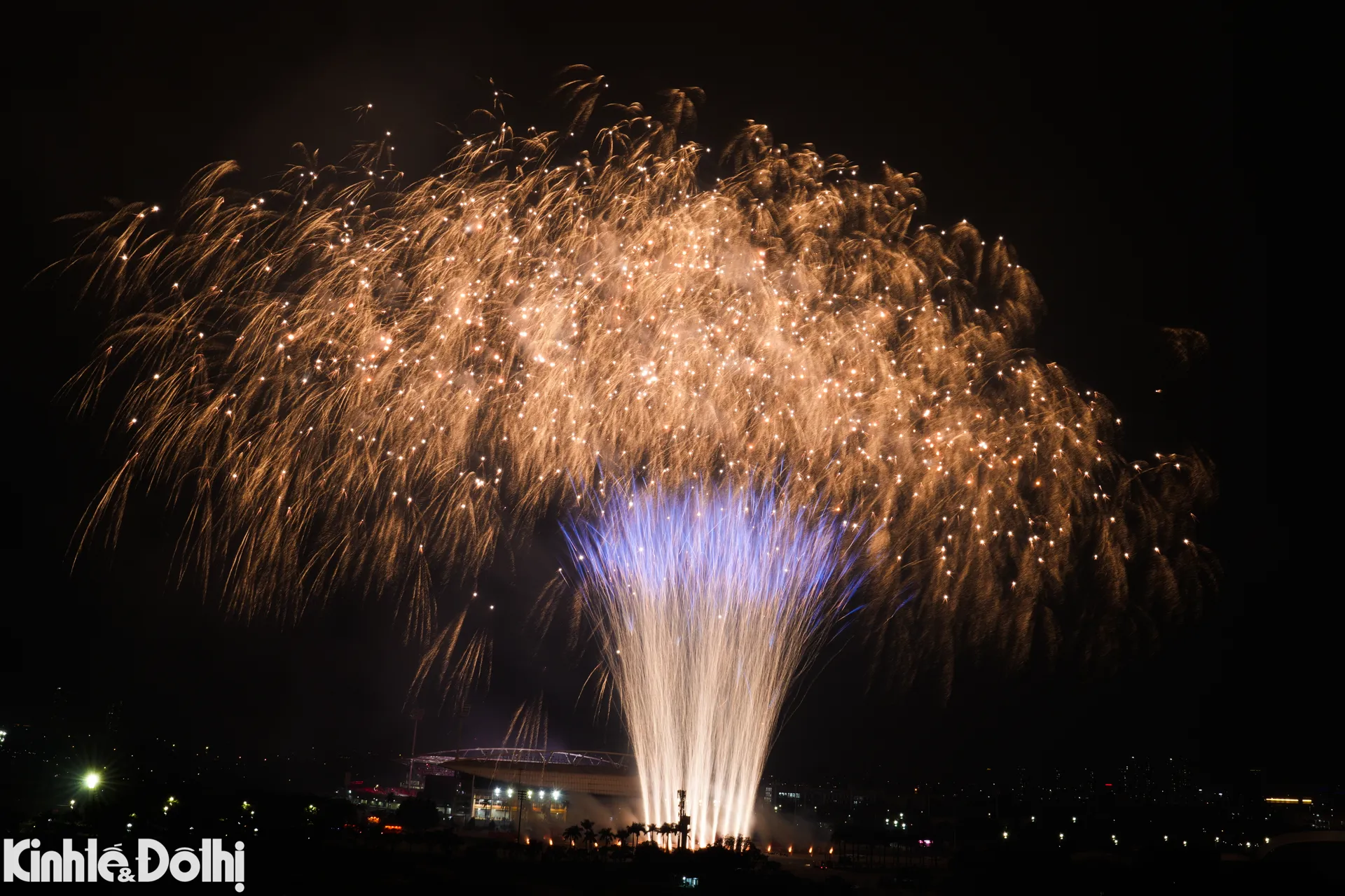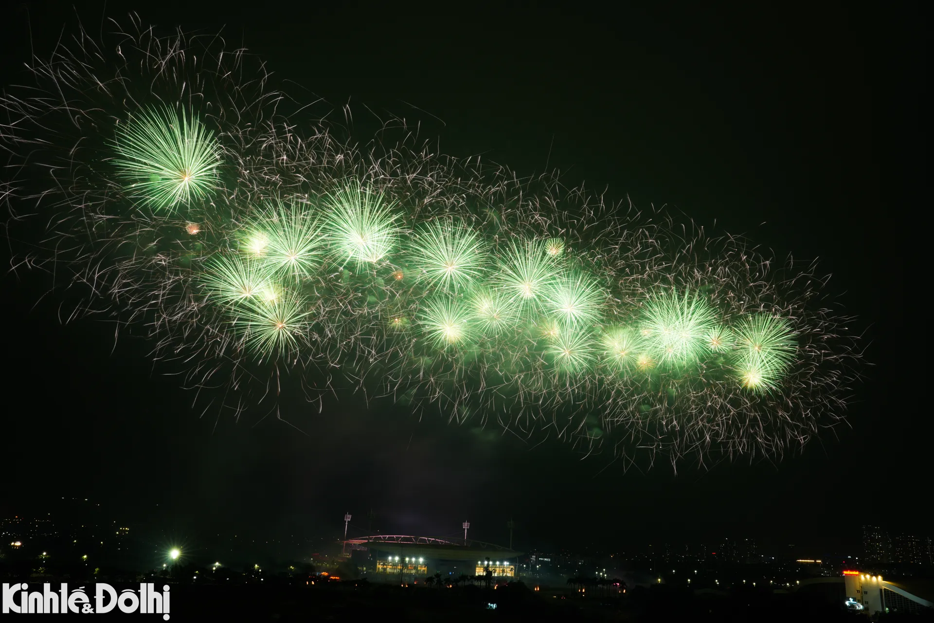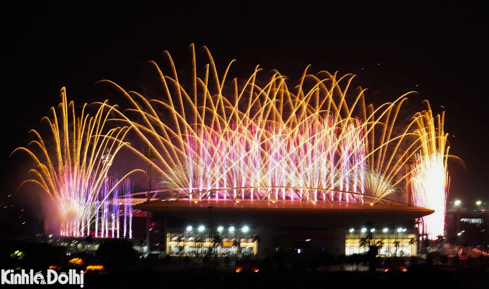 Màn bắn pháo hoa tầm cao kết hợp hỏa thuật tại sân vận động Mỹ Đình được xem là sự kiện trình diễn pháo hoa quy mô lớn nhất từ trước đến nay ở Hà Nội.