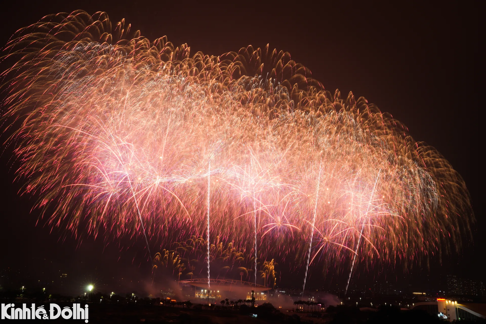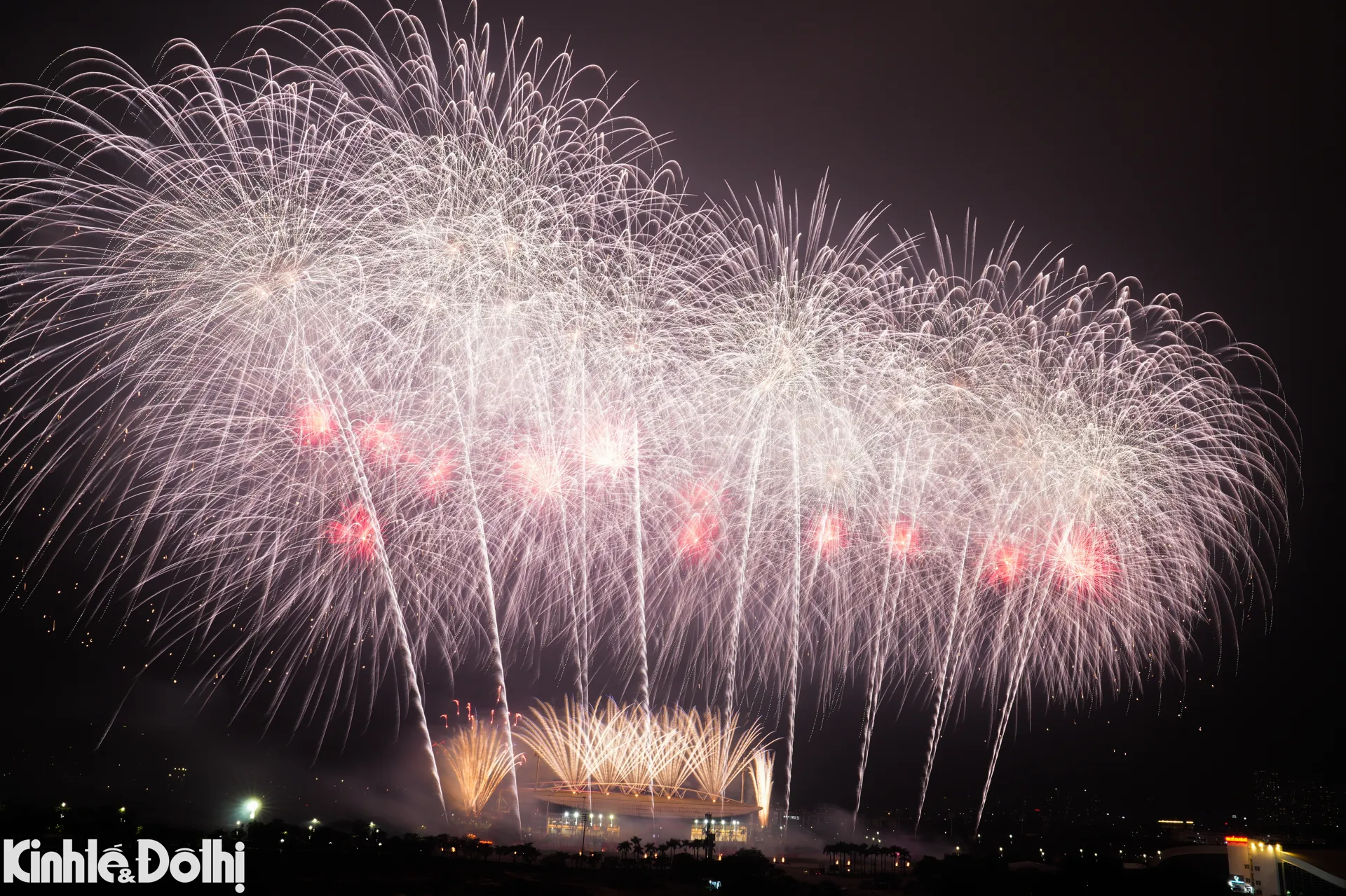 Gần 10.000 đơn vị pháo hoa tầm cao cùng hệ thống giàn phun hỏa thuật hiện đại đã được bắn xuyên suốt chương trình.