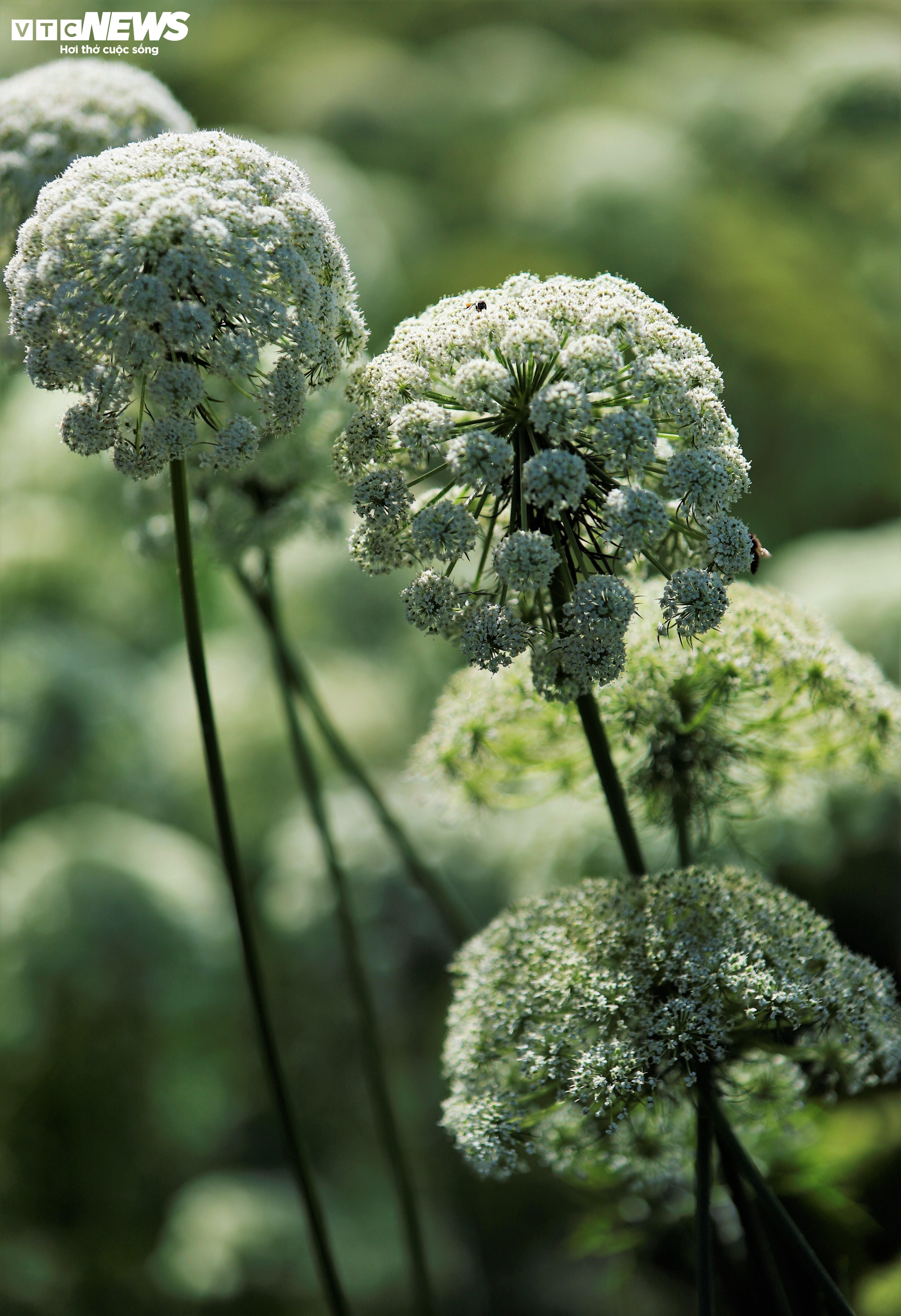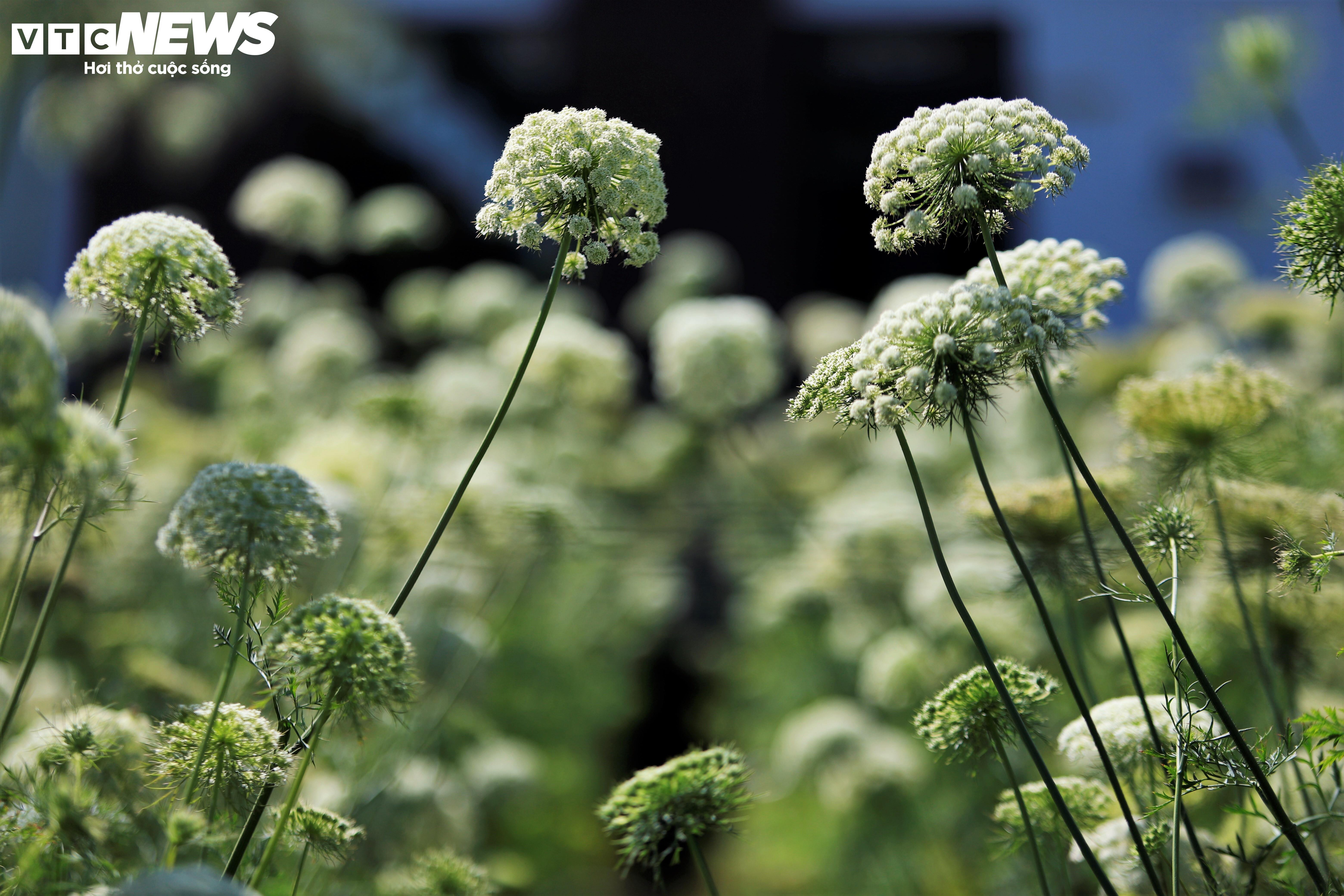 Cả cụm hoa vươn lên từ thân cây cao và mảnh, tạo nên một dáng vẻ vừa giản dị vừa thanh thoát, giống như một loài hoa dại của cao nguyên hơn là hoa của một loại rau quen thuộc.