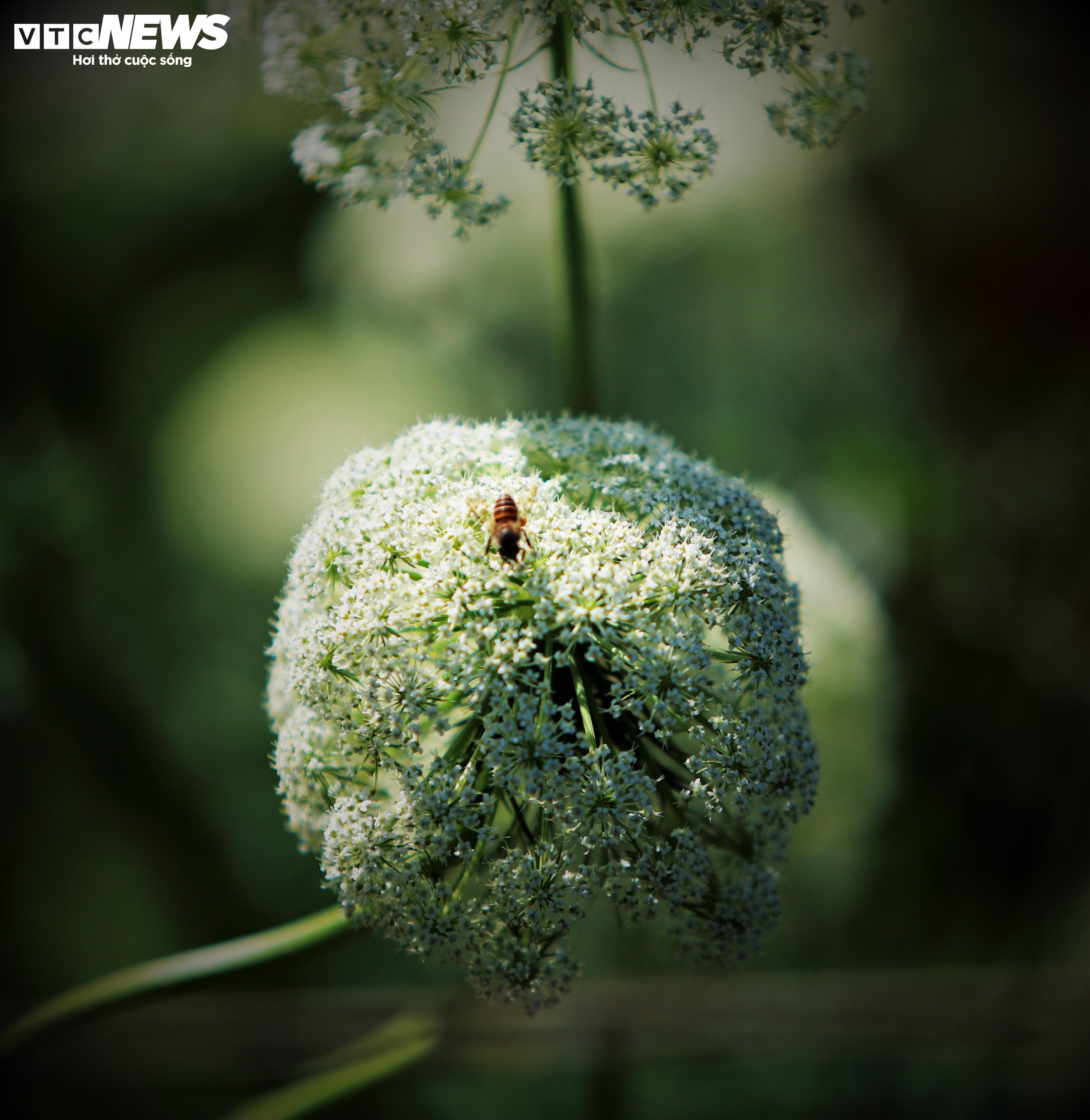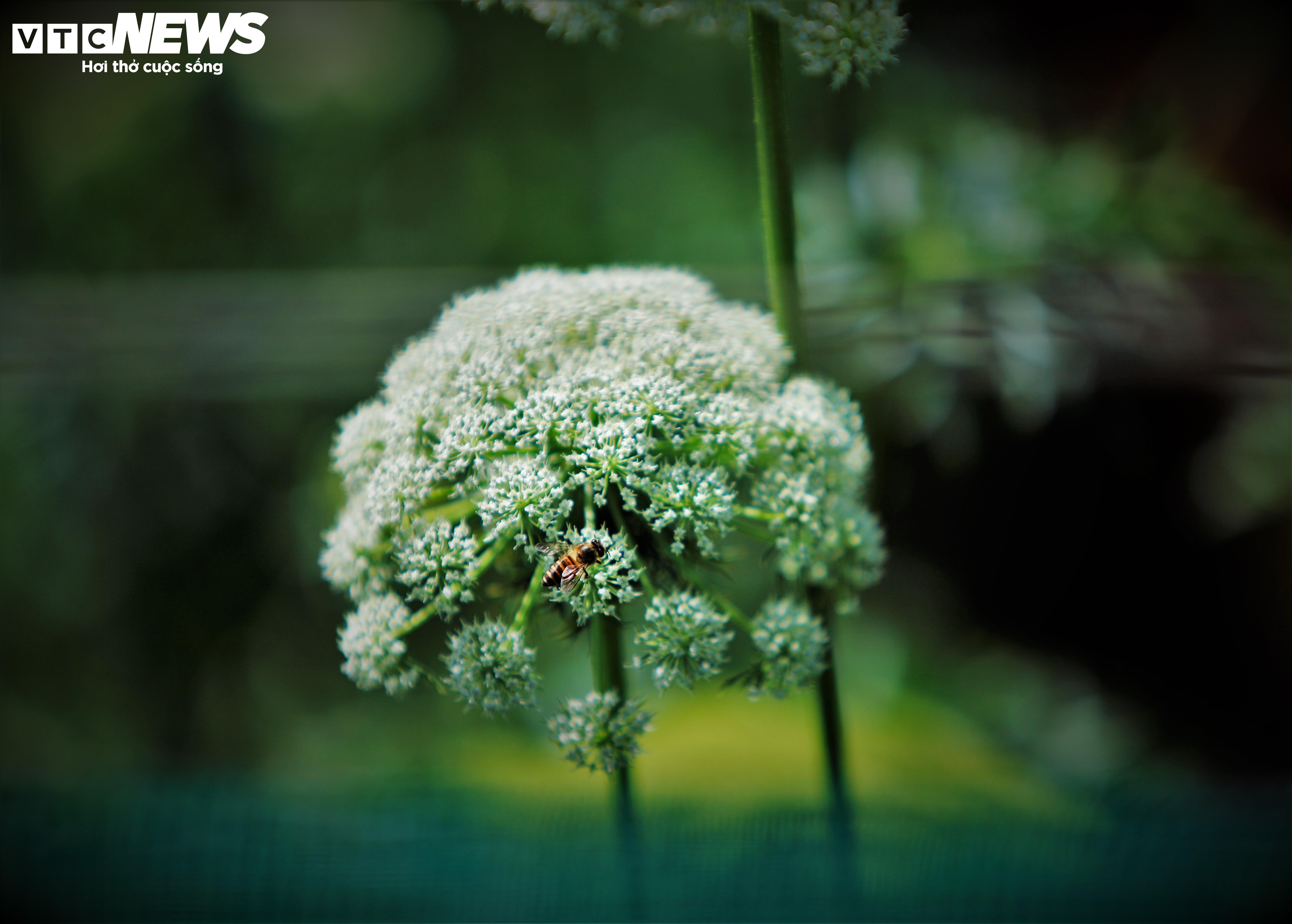 Hoa nhỏ, li ti, kết thành từng chùm như những chiếc ô tí hon, màu trắng ngà hoặc hơi ngả xanh, nhìn gần mới thấy rõ từng cánh mỏng manh xếp đều đặn quanh nhụy.