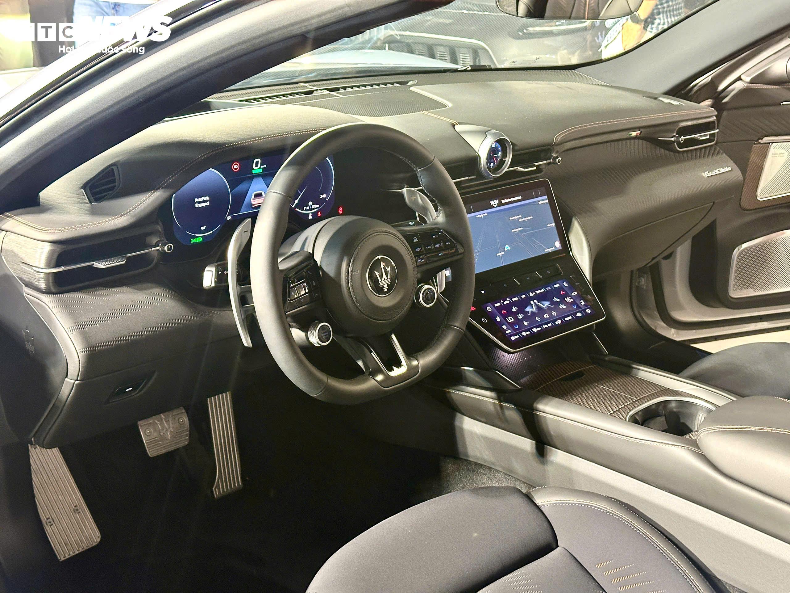 Bên trong khoang lái, Maserati tiếp tục sử dụng vật liệu ECONYL, loại sợi nylon tái chế với công nghệ tiên tiến. Việc ứng dụng vật liệu tái chế không chỉ mang lại cảm giác hiện đại và sang trọng mà còn thể hiện định hướng phát triển bền vững.