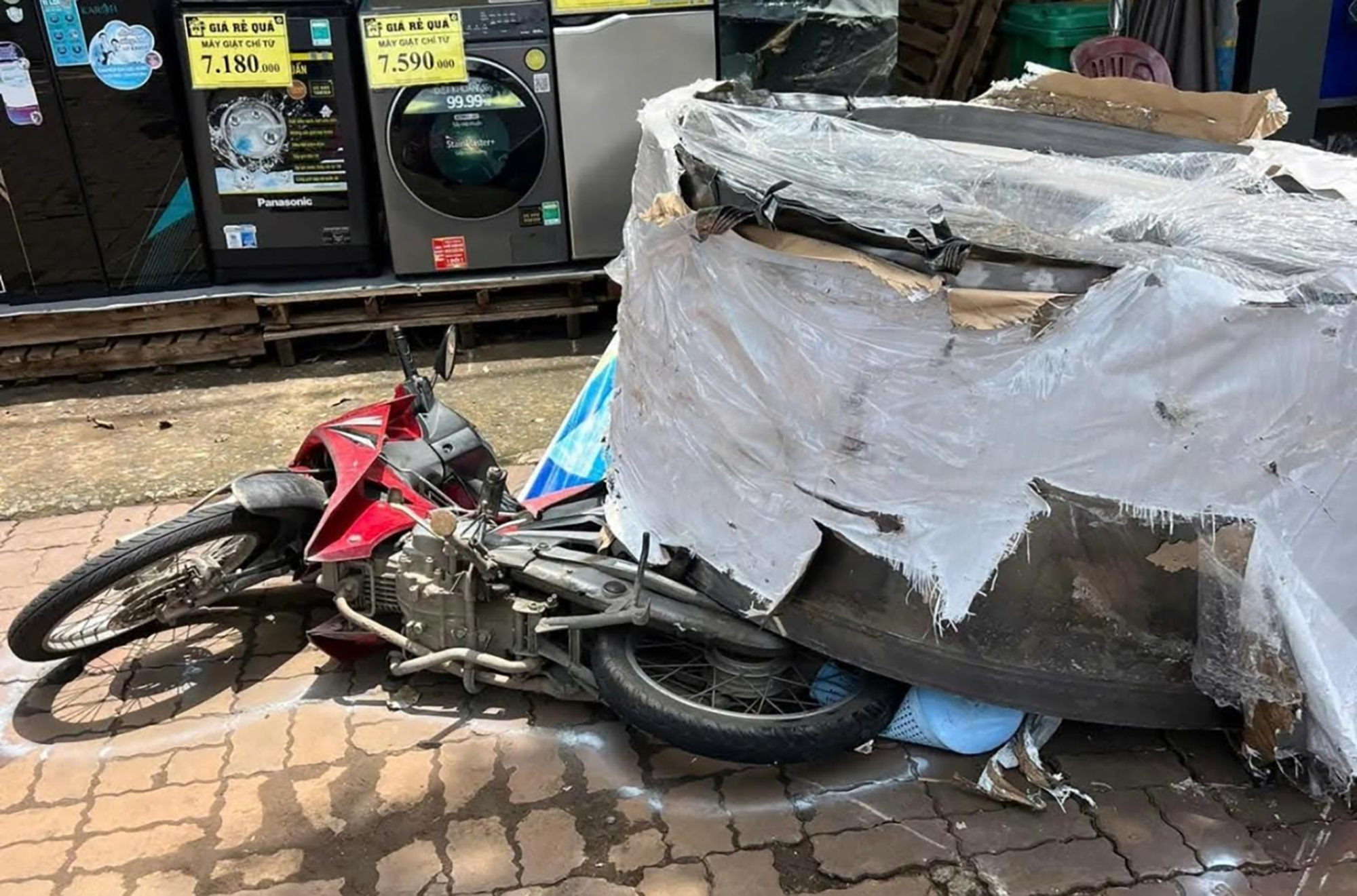 Cuộn thép rơi xuống đường đè bẹp xe máy.