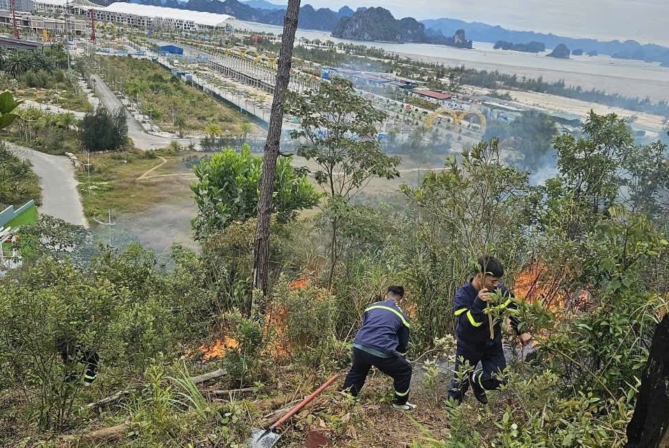 Tại hiện trường, lực lượng Cảnh sát PCCC và CNCH phối hợp với lực lượng của UBND đặc khu Vân Đồn và người dân địa phương phát quang thực bì, tạo đường băng cản lửa, đồng thời sử dụng các phương tiện chữa cháy chuyên dụng để khống chế đám cháy. Cán bộ, chiến sĩ cũng sử dụng cuốc, xẻng, cành cây và máy thổi gió để xử lý các điểm lửa còn âm ỉ trên sườn đồi.