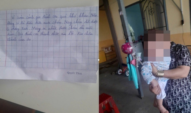 Mẩu giấy và bé trai được dàn cảnh "bỏ rơi" trước cổng chùa