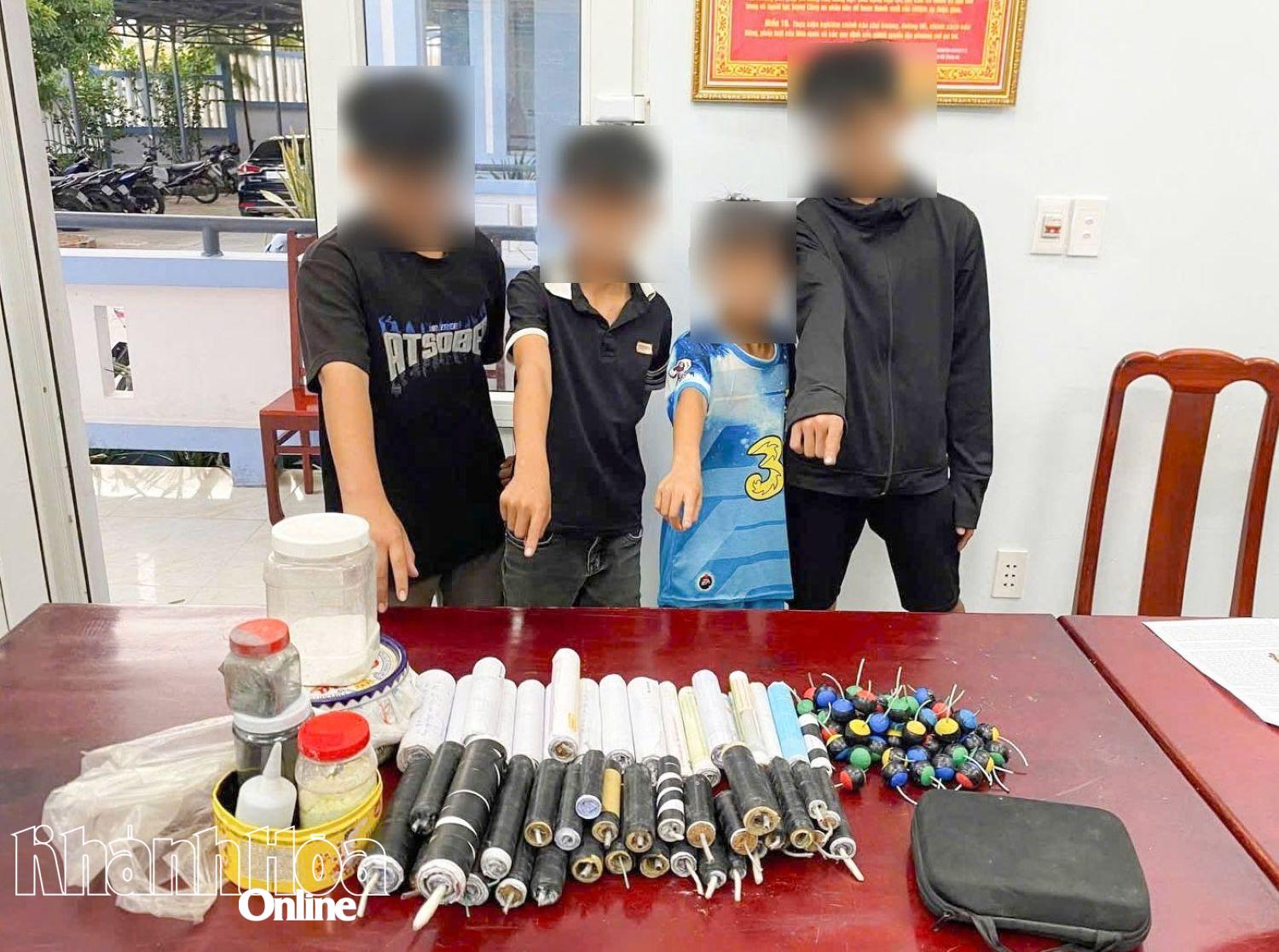 Nhóm thiếu niên có hành vi chế tạo pháo nổ bị Công an xã Phước Dinh phát hiện, thu giữ.