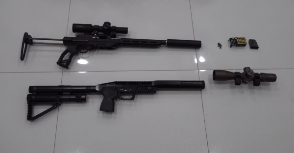 Tiến hành khám xét nơi ở của các đối tượng, Cơ quan công an thu giữ 3 khẩu súng hơi, 1 khẩu súng Rulo, 22 hộp đạn các loại, cùng nhiều linh kiện dùng lắp ráp súng và đồ vật, tài liệu khác có liên quan.