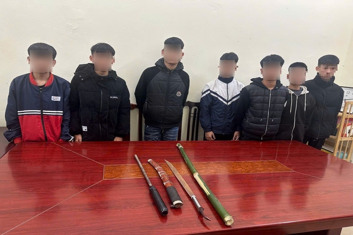 Qua kiểm tra, lực lượng chức năng phát hiện nhóm này mang theo 2 dao, 1 gậy tre và 1 dùi cui sắt. Khi thấy lực lượng Công an, các đối tượng đã vứt bỏ hung khí nhằm phi tang và bỏ chạy. Tổ công tác đã khống chế, đưa 7 đối tượng về trụ sở để làm việc.