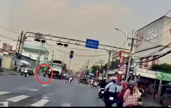 Hai bé gái 14 và 9 tuổi điều khiển xe đạp điện ôm cua ở ngã ba Tân Túc, TP Hồ Chí Minh không quan sát rơi vào điểm mù của xe tải dẫn đến cả 2 bị xe tải cán tử vong.