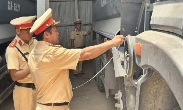 CSGT kiểm tra các phương tiện có tải trọng lớn để ngăn ngừa TNGT.