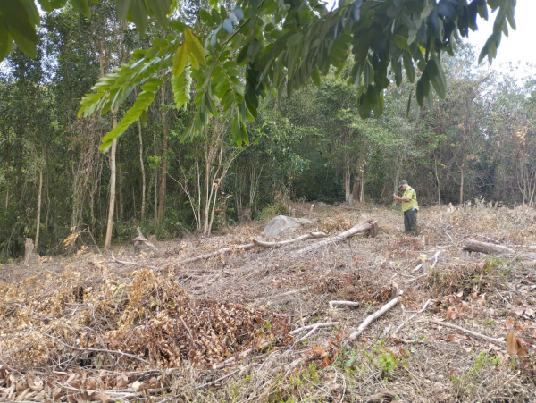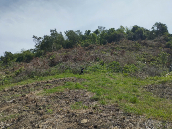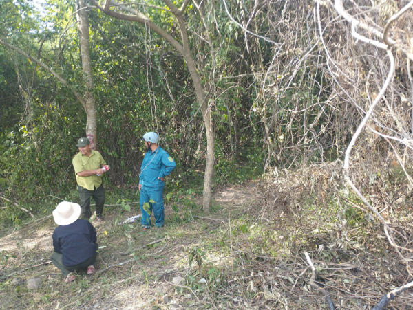 Hiện trường một vạt rừng ở xã Sơn Hòa bị người dân phát dọn trái phép đã được phát hiện và truy chặn.