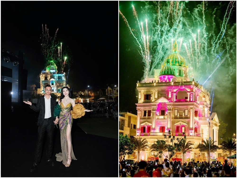 Giữa tháng 4 vừa qua, Ngân Collagen gây xôn xao khi đăng tải clip tổ chức tổ chức tân gia dinh thự 500 tỷ đồng tại TP Cần Thơ. Ảnh: FBNV