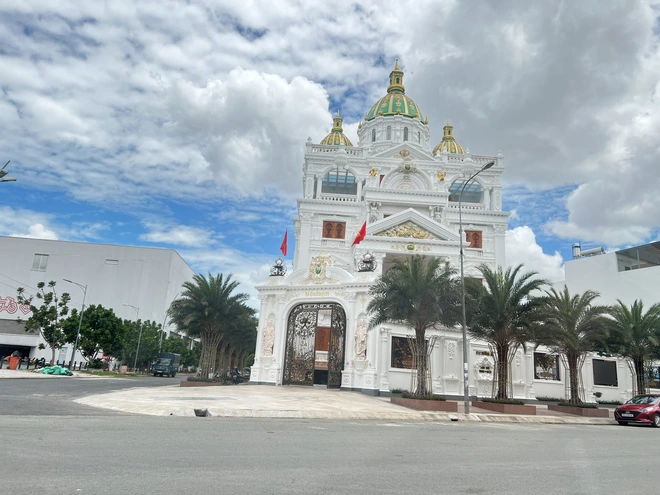 Theo giới thiệu trong clip, biệt thự rộng khoảng 1.000m2, được xây dựng trong 5 năm, thiết kế với màu trắng chủ đạo và chạm trổ nhiều hoa văn cầu kỳ. Ảnh: Người lao động