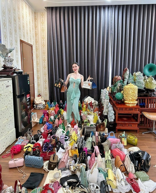 Ngân Collagen cũng từng chia sẻ về bộ sưu tập túi hiệu đắt đỏ lên đến hơn 200 chiếc. Thậm chí, cô còn phải thuê người để giúp lau dọn, bảo quản. Ảnh: Internet