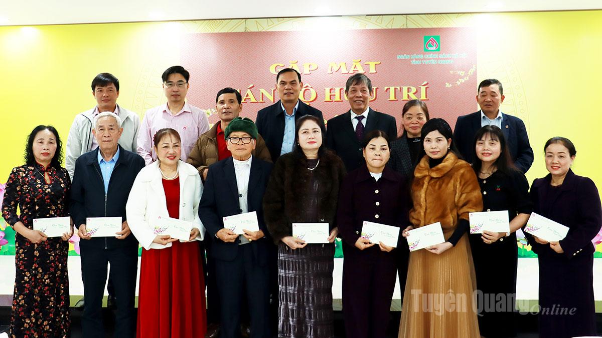 Lãnh đạo Ngân hàng Chính sách xã hội chi nhánh tỉnh Tuyên Quang tặng quà cho các cán bộ hưu trí.
