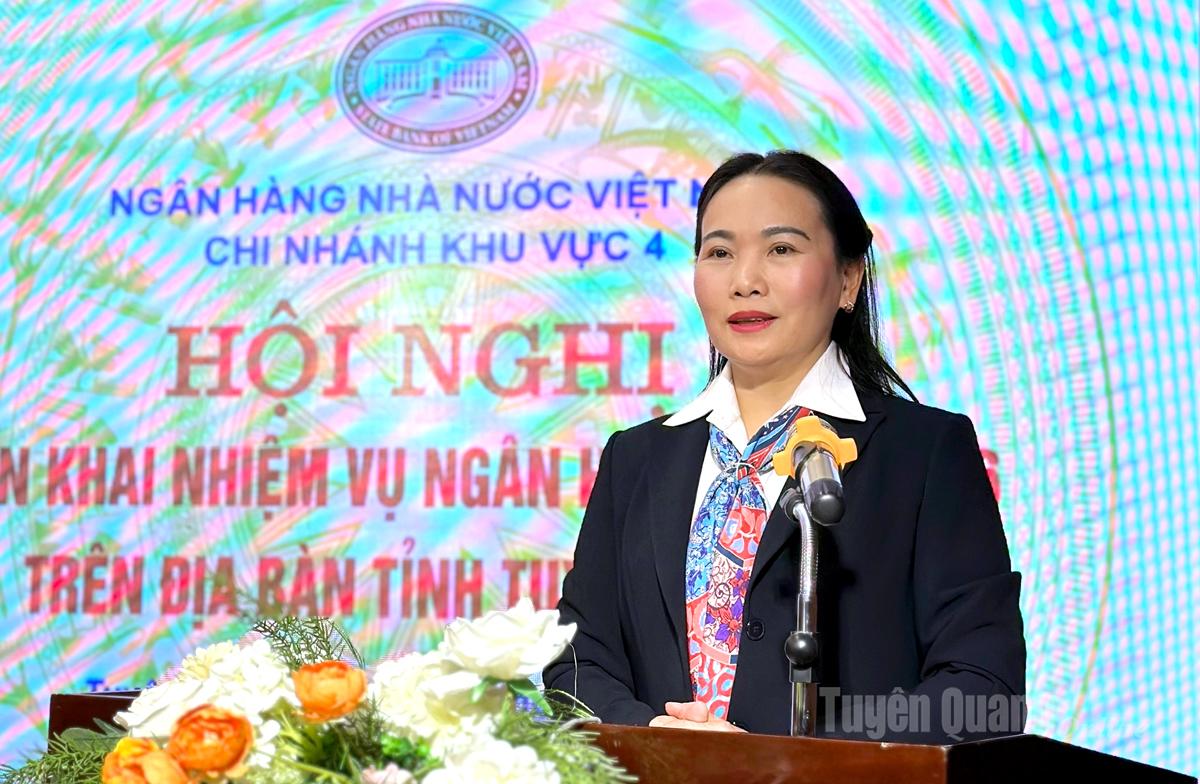 Phát biểu tại hội nghị, đồng chí Nông Thị Bích Huệ, Phó Bí thư Thường trực Đảng ủy UBND tỉnh ghi nhận và biểu dương những kết quả ngành Ngân hàng trên địa bàn tỉnh đã đạt được trong năm qua, đóng góp tích cực vào các mục tiêu phát triển kinh tế - xã hội của tỉnh. Trong bối cảnh còn nhiều khó khăn, ngành đã nỗ lực đổi mới phương thức chỉ đạo, điều hành, nâng cao hiệu lực, hiệu quả công tác quản lý nhà nước trên lĩnh vực được giao.