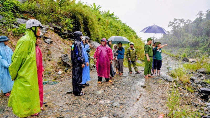 Chính quyền xã Khâm Đức, thành phố Đà Nẵng phối hợp các đơn vị chức năng tìm kiếm người dân mất tích trong cơn bão số 10 vừa qua. (Ảnh: ANH ĐÀO)