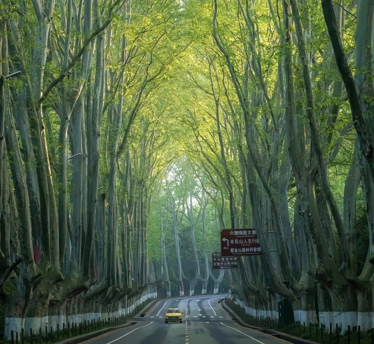 Mỗi mùa, đại lộ lại khoác lên mình một tấm áo riêng, khiến con đường trở thành điểm check-in hấp dẫn. Vào mùa xuân, những chồi non hé nở phủ kín con đường bằng sắc xanh mơn mởn, ánh sáng ban mai xuyên qua tán lá tạo vệt sáng lung linh, tràn đầy sức sống. Ảnh Okela Tour