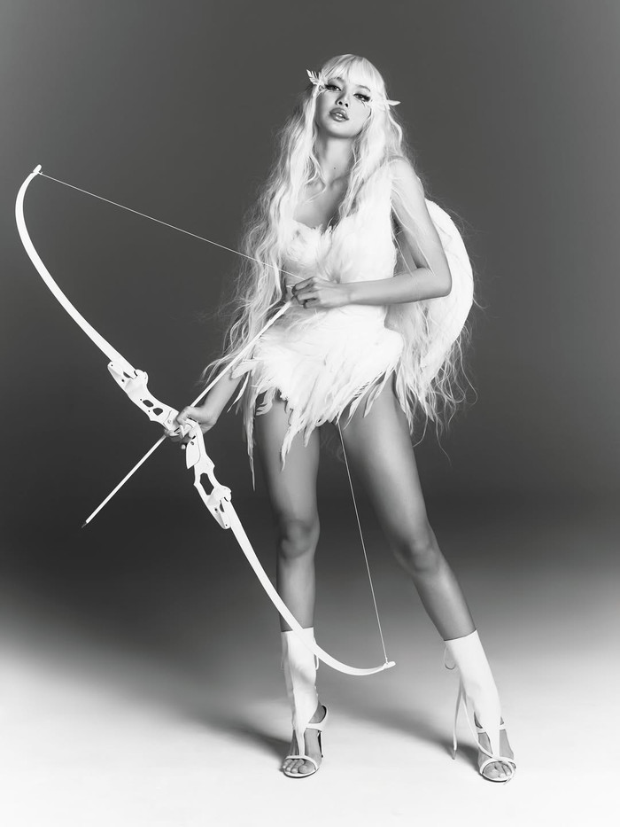 Trong những bức ảnh được chia sẻ, Lisa gây ấn tượng khi thử sức với concept táo bạo mang hơi hướng thần Cupid. Nữ thần tượng diện trang phục quyến rũ, sử dụng cây cung làm phụ kiện chủ đạo, tạo nên tổng thể vừa ngọt ngào vừa bí ẩn. Thiết kế có phần đuôi độc đáo càng làm tăng thêm nét gợi cảm và cá tính cho tạo hình. Đặc biệt, ánh nhìn trực diện vào ống kính cùng những dáng pose đầy mê hoặc giúp Lisa khẳng định thần thái cuốn hút khó rời mắt.