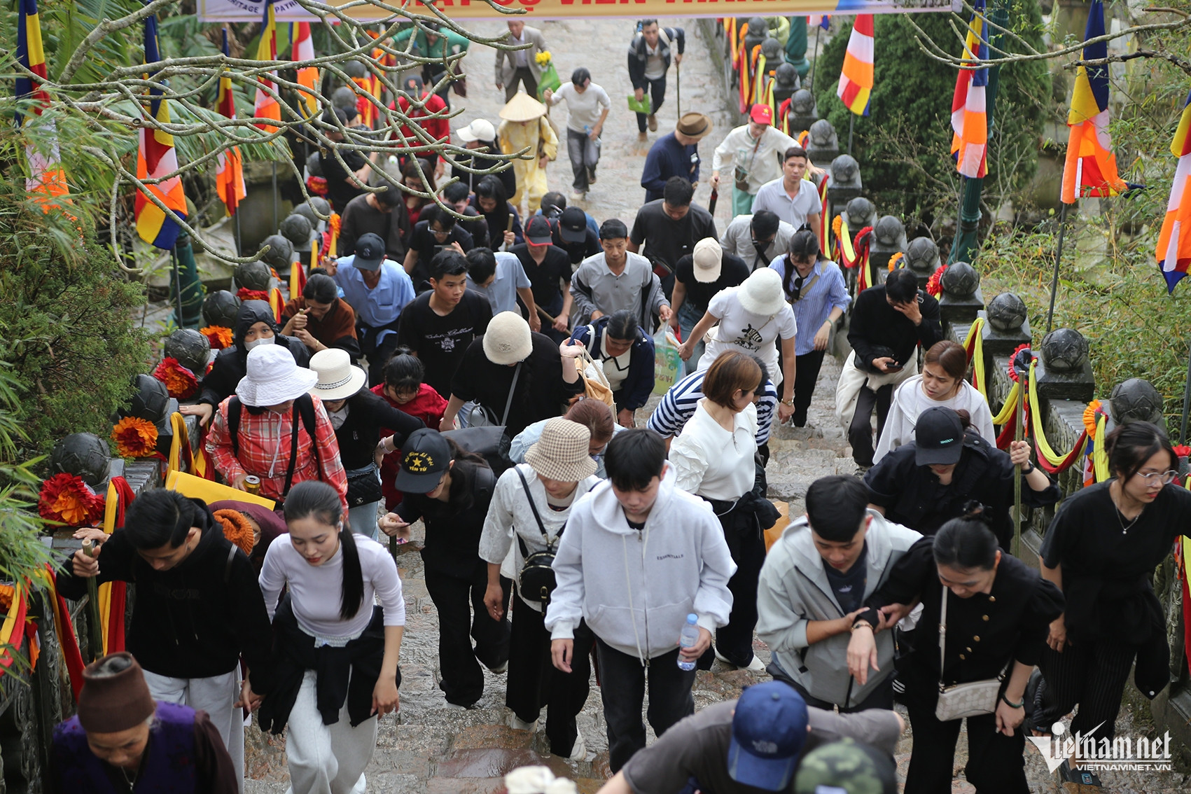 Nhiều du khách nối đuôi nhau lên chùa Hoa Yên.