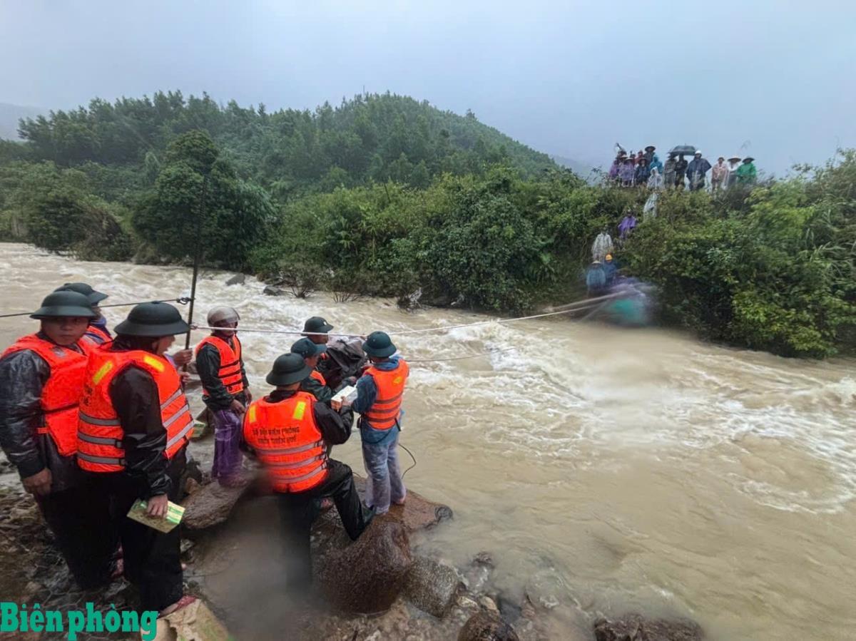 BĐBP thành phố Huế hỗ trợ nhu yếu phẩm cho người dân vùng bị chia cắt do mưa lũ. Ảnh: Võ Tiến