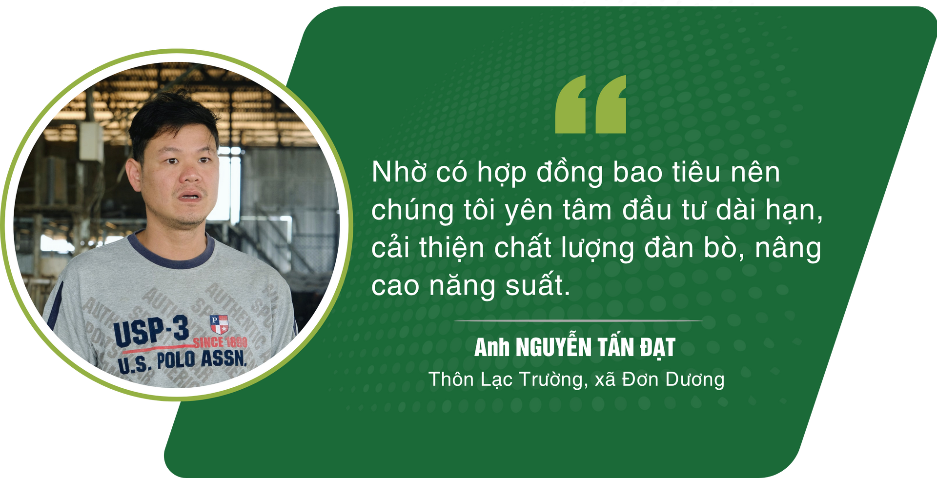 “Hiện nay, giá sữa được doanh nghiệp thu mua ổn định khoảng 15.000 - 16.000 đồng/lít. Gia đình tôi nuôi khoảng 150 con, trong đó có 50 con đang cho sữa, mỗi ngày cung ứng sản lượng khá lớn. Nhờ có hợp đồng bao tiêu nên chúng tôi yên tâm đầu tư dài hạn, cải thiện chất lượng đàn bò, nâng cao năng suất,” anh Đạt chia sẻ.