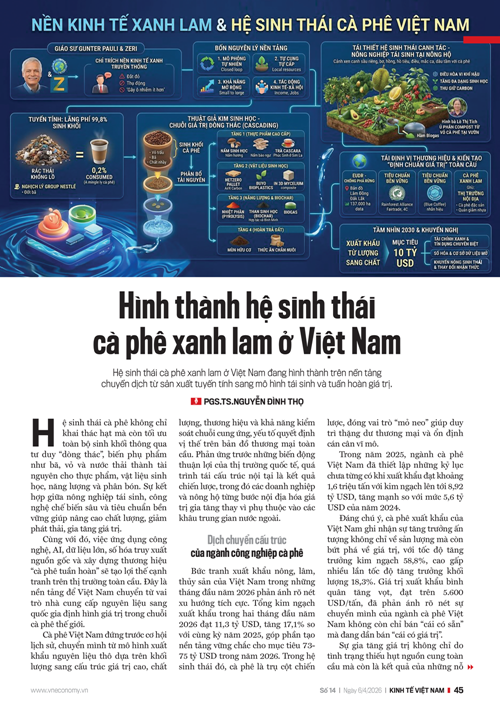 Ngành cà phê Việt Nam đang đứng trước cơ hội lịch sử để chuyển mình từ mô hình sản xuất tuyến tính truyền thống sang hệ sinh thái cà phê xanh lam. Đây là chiến lược trọng tâm nhằm tối ưu hóa giá trị thông qua tư duy tuần hoàn và tái sinh, định vị lại vị thế của cà phê Việt Nam trên bản đồ thương mại toàn cầu.
