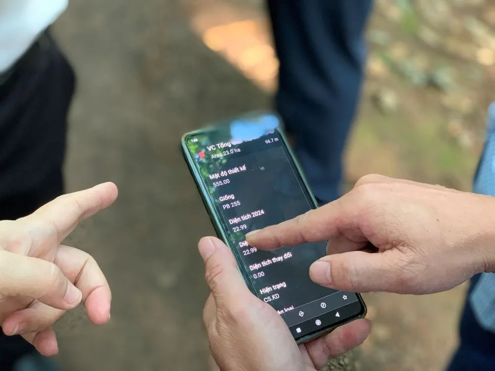 Giữa một khu vườn cao su tại một tỉnh khu vực Đông Nam bộ, một kỹ sư đang cầm chiếc điện thoại thông minh. Anh không kiểm tra tin tức mà đang thao tác trên một ứng dụng chuyên dụng, để kiểm tra truy xuất nguồn gốc của từng lô cao su.