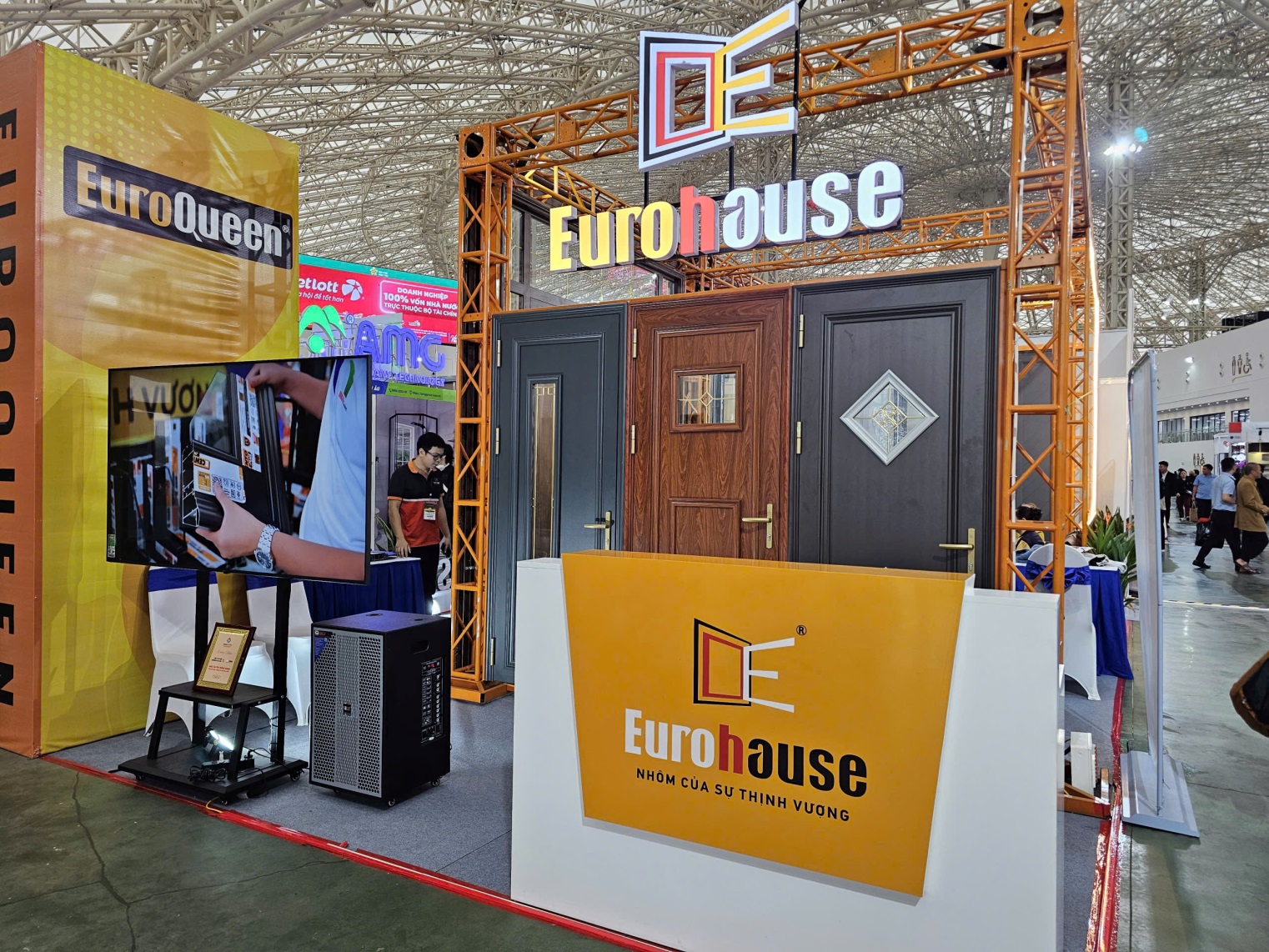 Ông Phạm Trường Giang, Tổng giám đốc Công ty CP Eurohouse Việt Nam cho biết, Eurohouse là nhà sản xuất nhôm thanh định hình cho lĩnh vực cửa xây dựng và công nghiệp. Tại triển lãm lần này, Eurohouse giới thiệu dòng sản phẩm cửa với thiết kế hiện đại, nổi bật với công nghệ nhôm tấm hàn kép bằng laser và lớp phủ phim polyester cao cấp. Đây là những giải pháp mới, có thể thay thế hoàn toàn hệ thống cửa gỗ truyền thống, mang lại độ bền vượt trội và tính thẩm mỹ tinh tế.