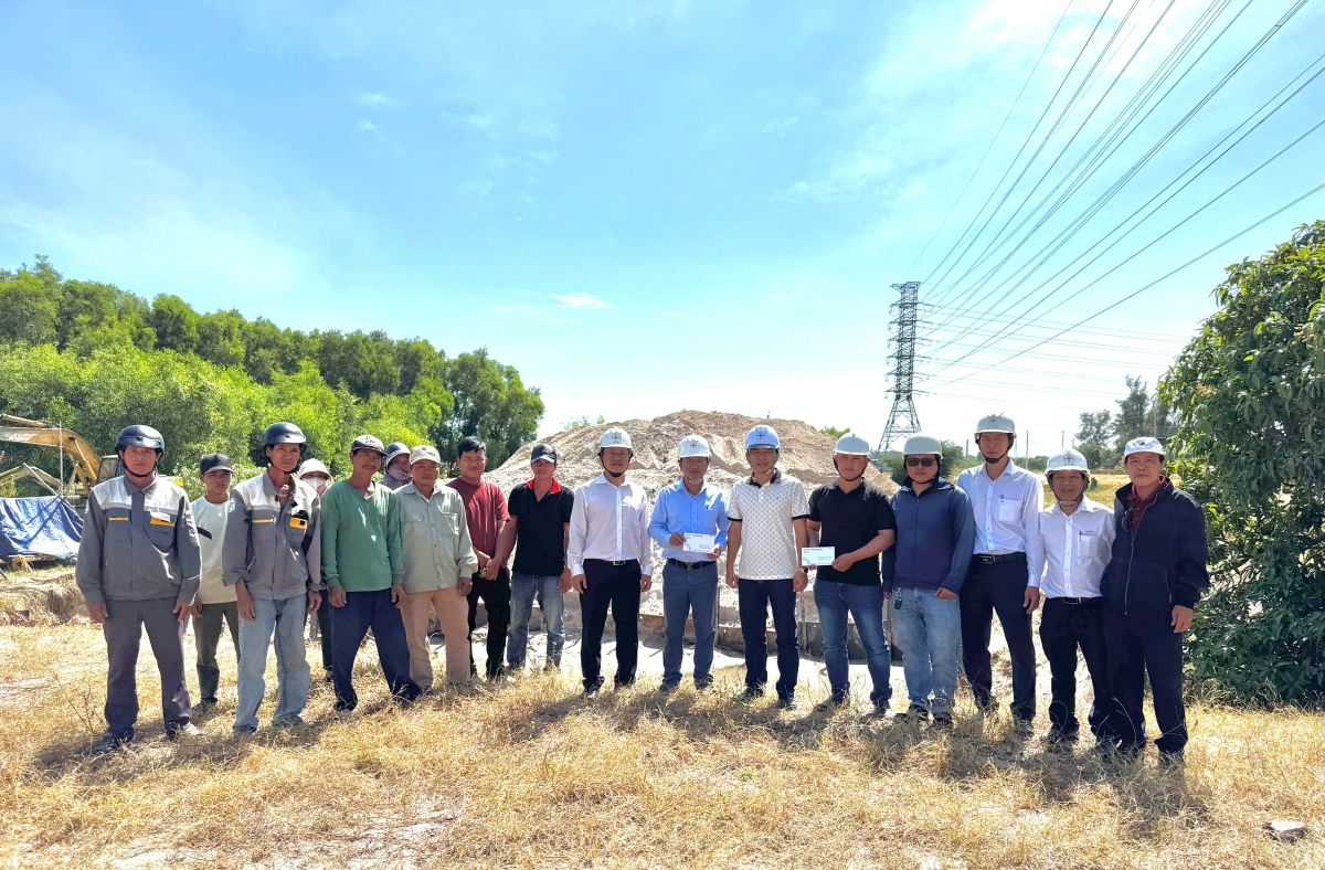 Thành viên HĐTV Lê Hoàng Oanh tặng quà động viên người lao động làm việc xuyên Tết trên công trình Xây dựng mới tuyến dây đấu nối trạm 110kV Phước Đông 5&6 (220kV Tây Ninh 2) – 220kV Phước Đông, 2 mạch”, tỉnh Tây Ninh
