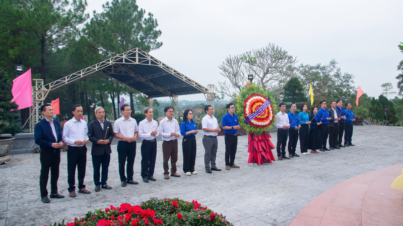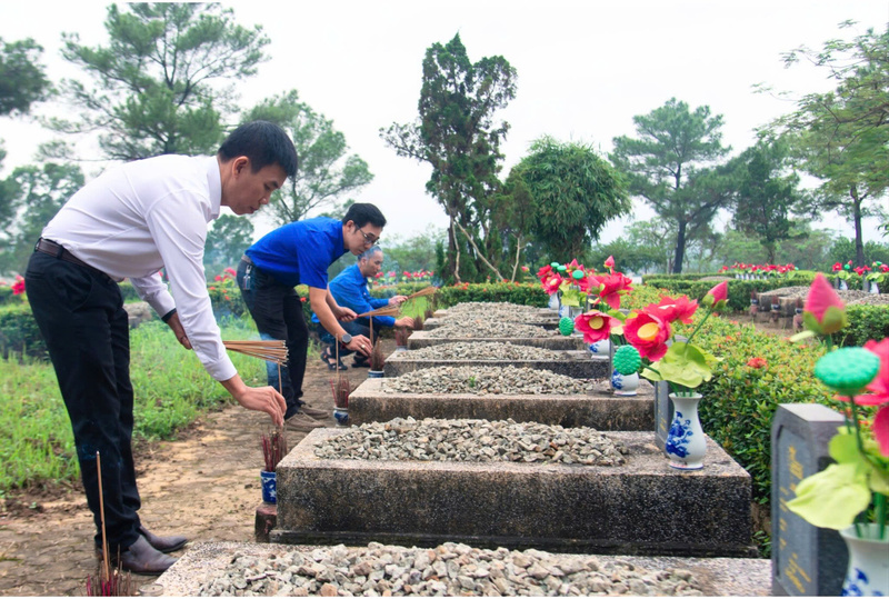 Các thành viên trong đoàn thắp hương tưởng nhớ các anh hùng liệt sĩ đã anh dũng hy sinh vì đất nước. Ảnh: D. Huyền