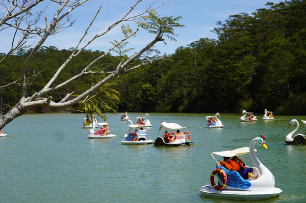 Những điểm du lịch nổi tiếng ở Đà Lạt đều ghi nhận lượng khách tăng mạnh so với thời gian trước. Tại Khu du lịch Quốc gia hồ Tuyền Lâm, từng nhóm du khách chèo sup, cắm trại, tận hưởng không gian rừng thông xanh mát. Sương sớm bảng lảng trên mặt hồ tạo nên khung cảnh khiến nhiều người ví như mình đang lạc vào “tiên cảnh nơi hạ giới”.
