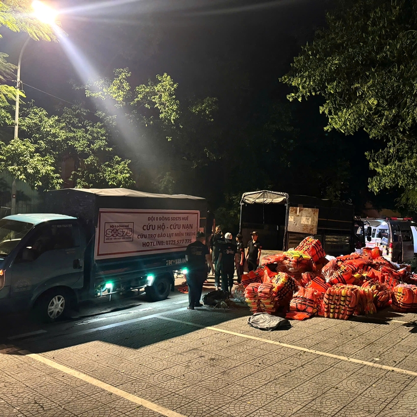 Hàng hóa cứu trợ thiên tai được Đội tình nguyện “Xe 0 đồng” xuyên đêm chở ra miền Bắc