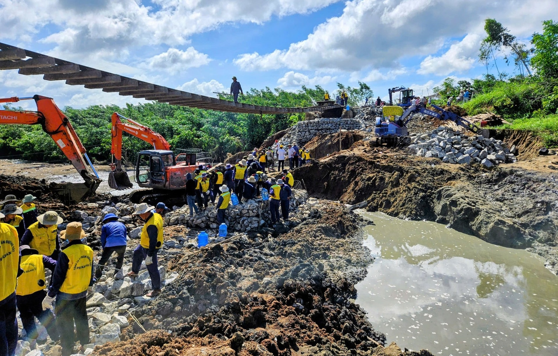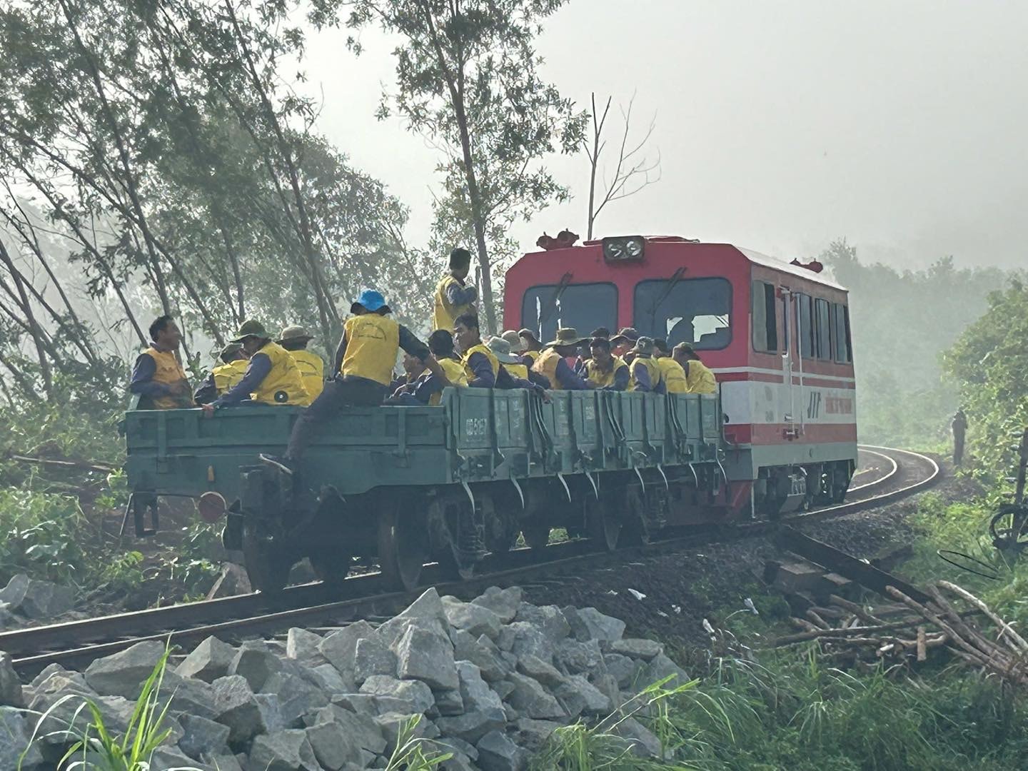 Ba đầu máy 708, 713, 009 trực ở Hòa Đa, ba đầu máy 236, 934, 013 ở Diêu Trì luân phiên nhau kéo tàu đá tiếp viện cho công trường. Giữa thời tiết khắc nghiệt và đất đá ngổn ngang, những người công nhân đường sắt vẫn kiên cường bám trụ, làm việc luân phiên suốt ngày đêm. Tất cả cùng hướng về một mục tiêu chung: Thông tuyến sớm nhất có thể.