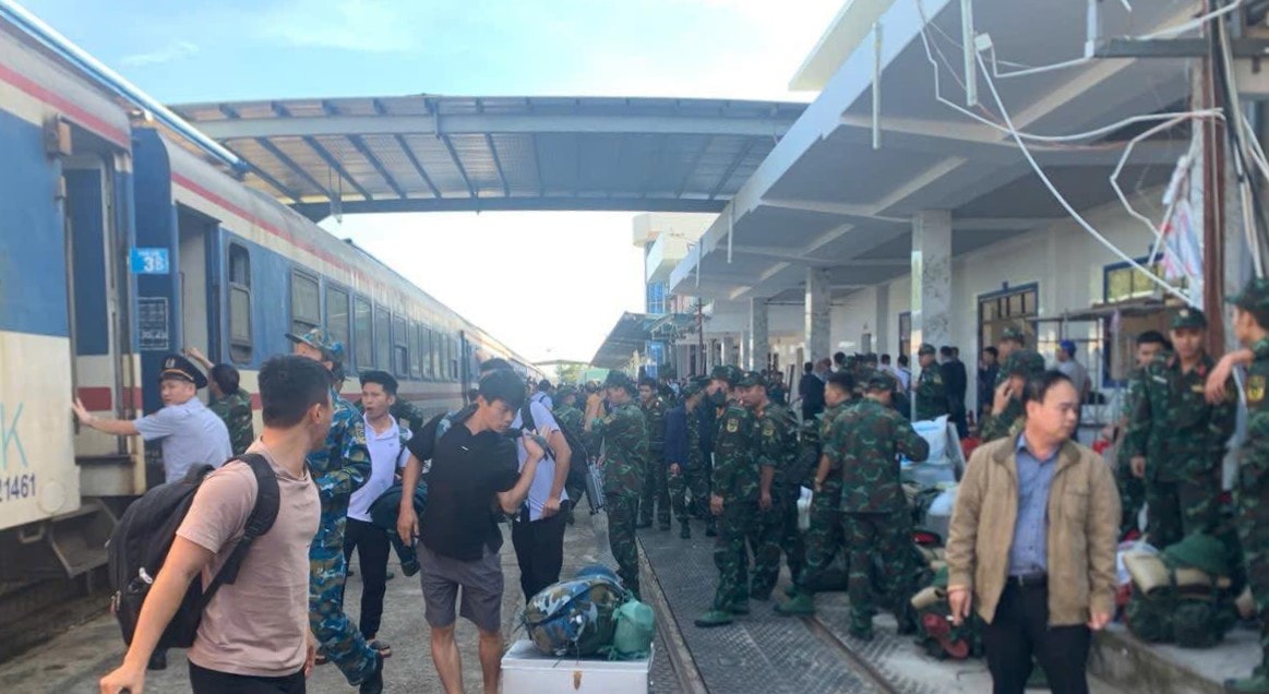 Sáng 9-11, công tác chuyển tải hành khách giữa ga Diêu Trì và ga Tuy Hòa vẫn tiếp tục diễn ra. Những hành khách trong sáng nay là cán bộ, chiến sĩ một đơn vị quân đội đang trên đường di chuyển trên chuyến tàu SE5 xuất phát từ ga Hà Nội hôm 8-11.