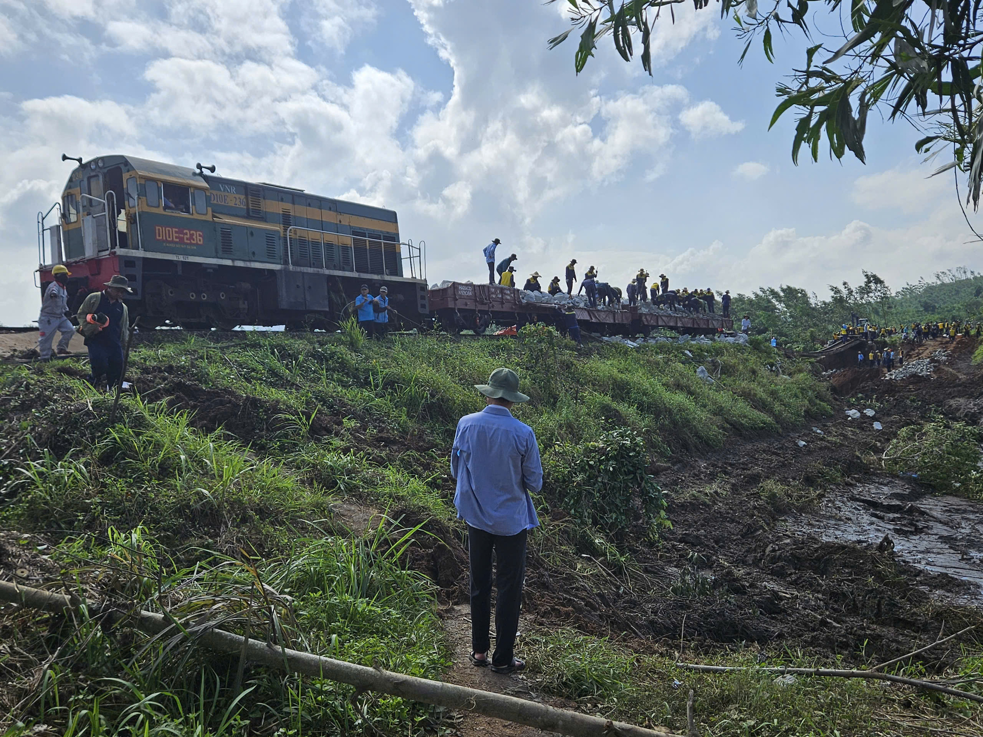 Hiện ngành Đường sắt đang huy động lực lượng, thiết bị để khẩn trương khắc phục các điểm sạt lở. Tuy nhiên, do nền đường bị trôi sâu và nước chảy xiết, công tác sửa chữa, khôi phục tuyến sẽ phụ thuộc vào diễn biến thời tiết và khả năng thoát nước, nên chưa xác định được thời điểm thông tuyến chính thức.