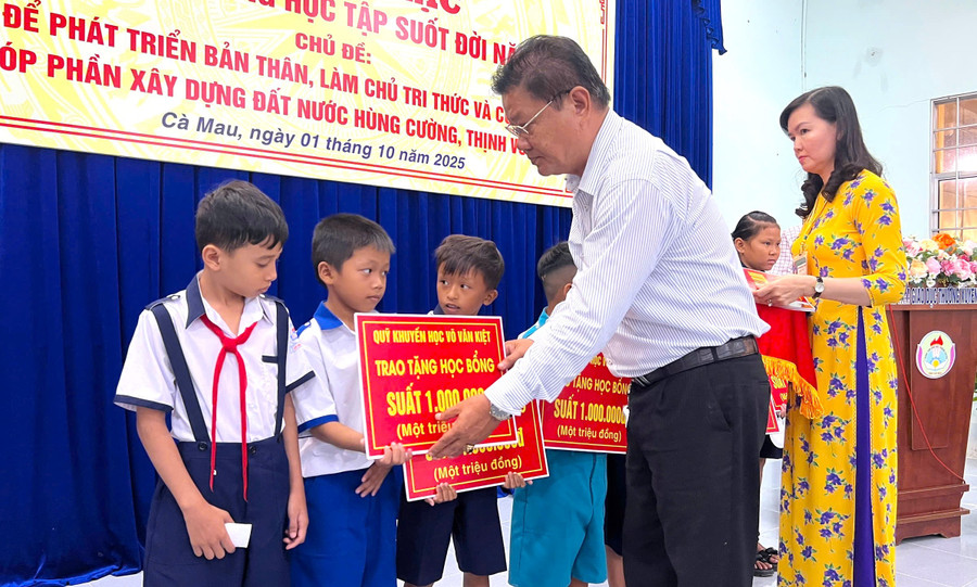 Nhân lễ phát động Tuần lễ học tập suốt đời, Quỹ Khuyến học Võ Văn Kiệt trao tặng 50 suất học bổng, tổng trị giá 50 triệu đồng cho học sinh có hoàn cảnh khó khăn nhằm tiếp thêm động lực cho các em trong hành trình chinh phục tri thức.