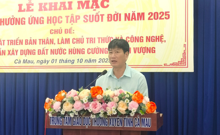Phát biểu khai mạc, ông Đặng Trí Thủ, Phó Giám đốc Sở GD&ĐT tỉnh Cà Mau nhấn mạnh, trong kỷ nguyên chuyển đổi số và hội nhập quốc tế, tri thức biến đổi từng ngày, công nghệ đổi mới từng giờ. Mỗi công dân chỉ có thể thích ứng, sáng tạo và khẳng định vị trí của mình bằng tinh thần kiên trì tự học, nuôi dưỡng khát vọng học tập suốt đời. Học không chỉ để biết, để làm, để trưởng thành mà còn để cống hiến, phụng sự Tổ quốc.