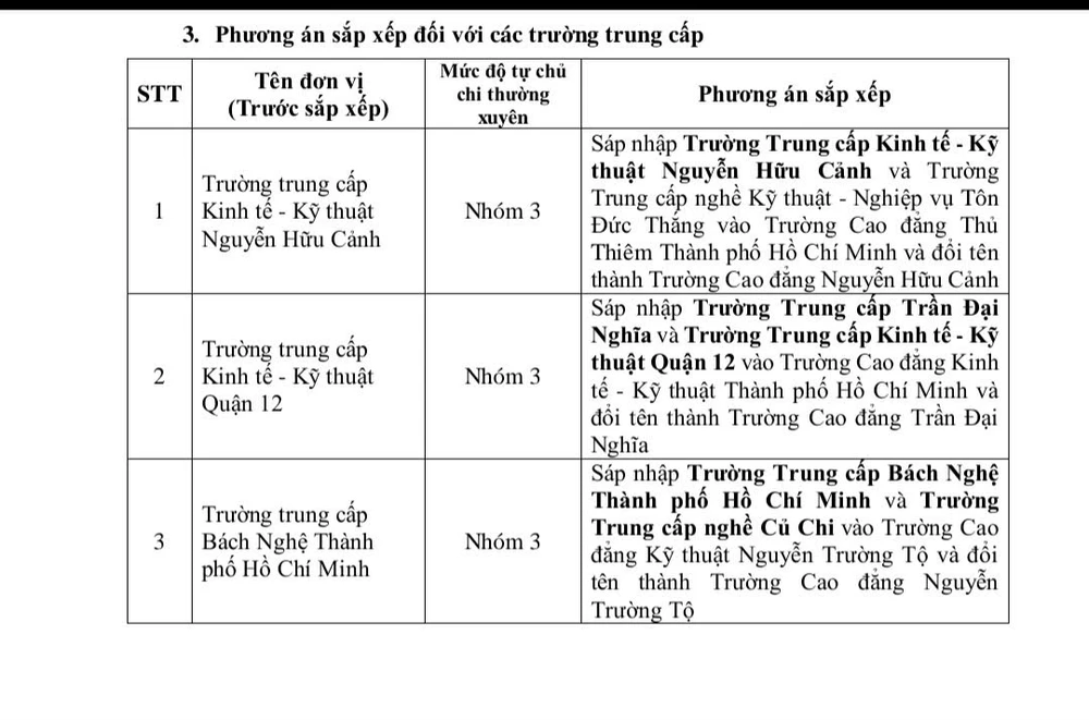 Theo Sở GD&ĐT TP.HCM, sẽ hợp nhất trung tâm giáo dục nghề nghiệp, trung tâm giáo dục thường xuyên thành trung học nghề tương đương cấp THPT trực thuộc Sở GD&ĐT để cung ứng dịch vụ công theo khu vực liên phường, xã.