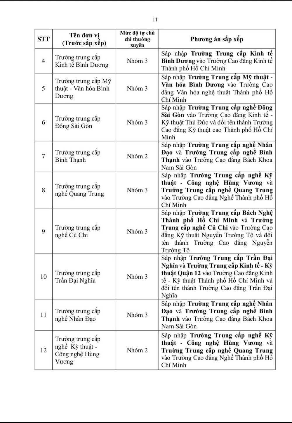 Như vậy sau sắp xếp theo đề án của Sở GD&ĐT, TP.HCM còn 236 đơn vị sự nghiệp công lập (giảm 15 đơn vị). Cụ thể: