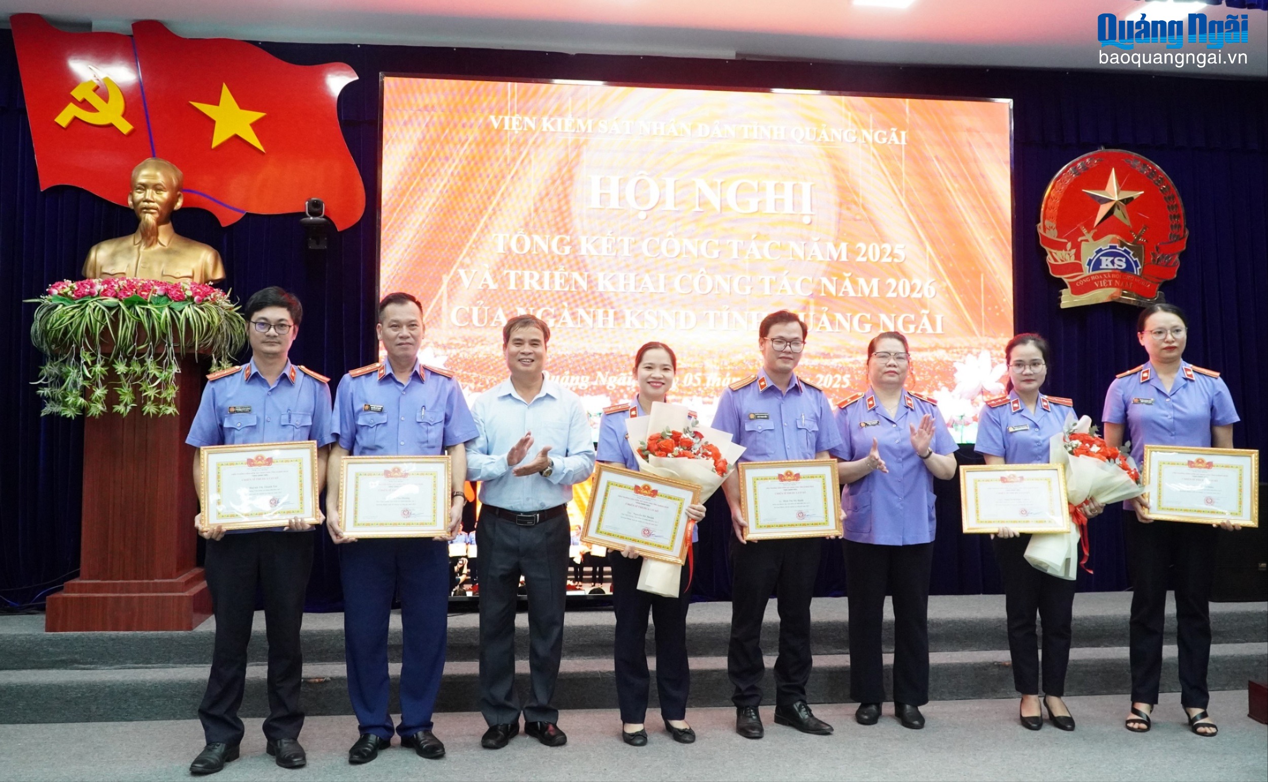 Dịp này, Viện KSND tỉnh trao danh hiệu “Chiến sĩ thi đua cơ sở” năm 2025 và khen thưởng các tập thể, cá nhân có thành tích xuất sắc đột xuất trong tham mưu sắp xếp, tinh gọn tổ chức bộ máy.