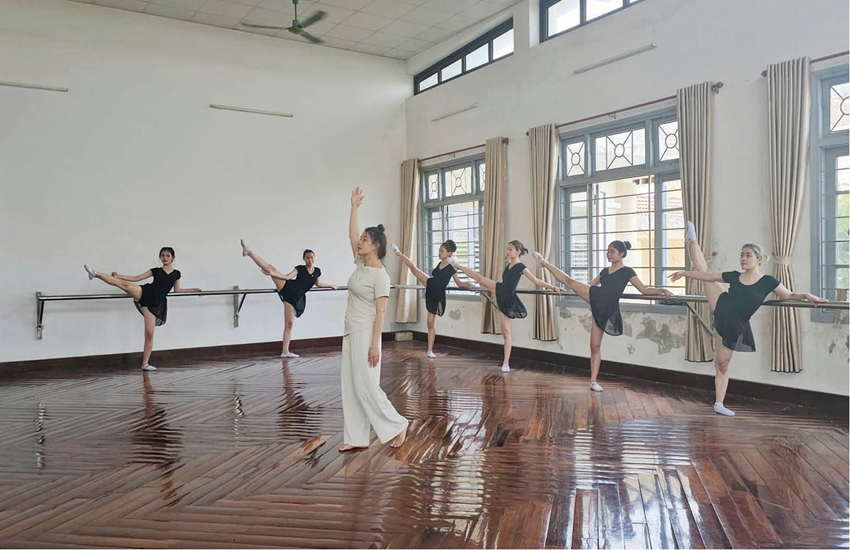 Các học viên trong ngành múa của Trường Trung cấp Văn hóa Nghệ thuật Huế trong giờ thực hành