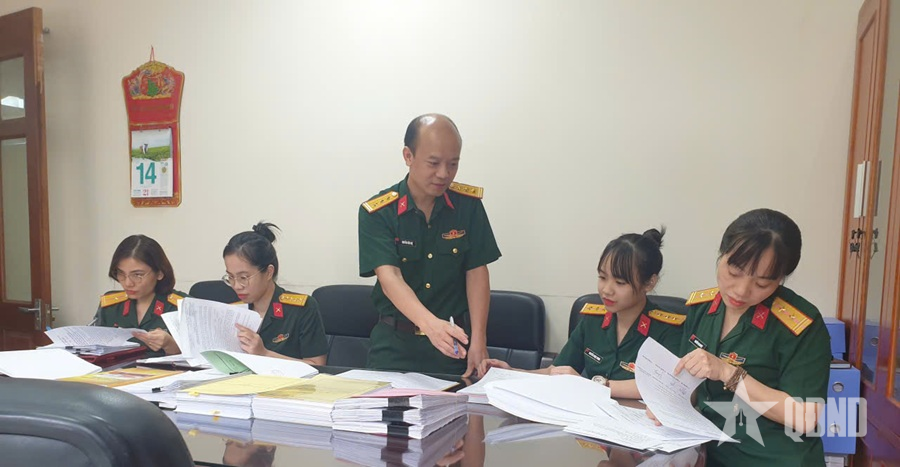Cán bộ Phòng Tài chính, Bộ Tổng Tham mưu kiểm tra chứng từ chi tiêu tại Ban Tài chính, Cục Hậu cần, Bộ Tổng Tham mưu.