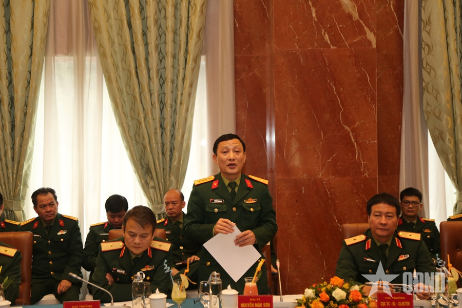 Đại tá Nguyễn Mậu Sơn, Trưởng phòng Tài chính Bộ Tổng Tham mưu phát biểu tại hội nghị triển khai quyết định khảo sát kiểm toán.