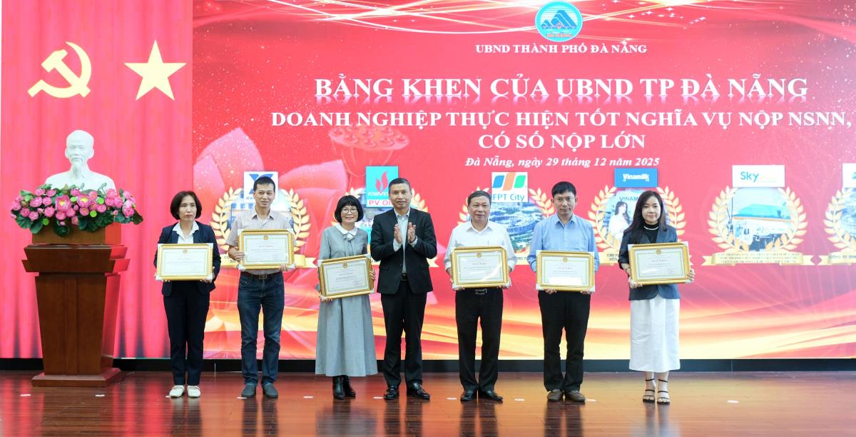 Lãnh đạo Thuế TP Đà Nẵng trao tặng giấy khen của Cục Thuế cho 16 tập thể có thành tích xuất sắc trong công tác thuế năm 2025.