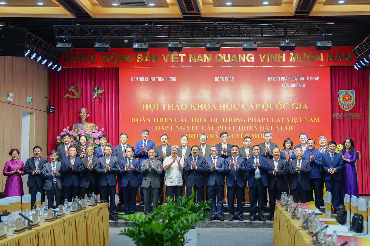 Các đại biểu tại Hội thảo khoa học cấp quốc gia “Hoàn thiện cấu trúc hệ thống pháp luật Việt Nam đáp ứng yêu cầu phát triển đất nước trong kỷ nguyên mới”.