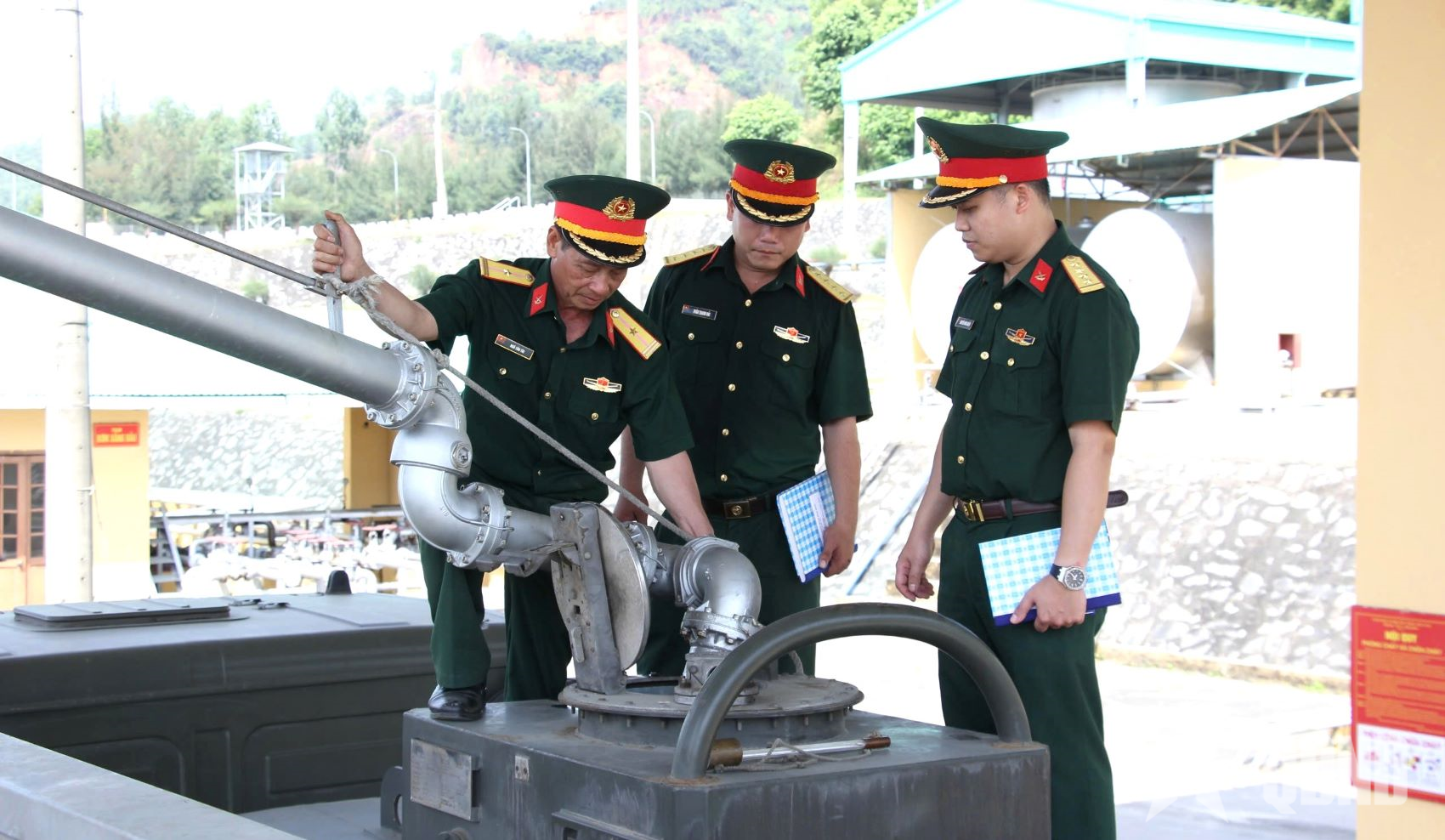Cán bộ phòng xăng dầu Quân khu 5 kiểm tra, hướng dẫn quy trình cấp phát xăng dầu.